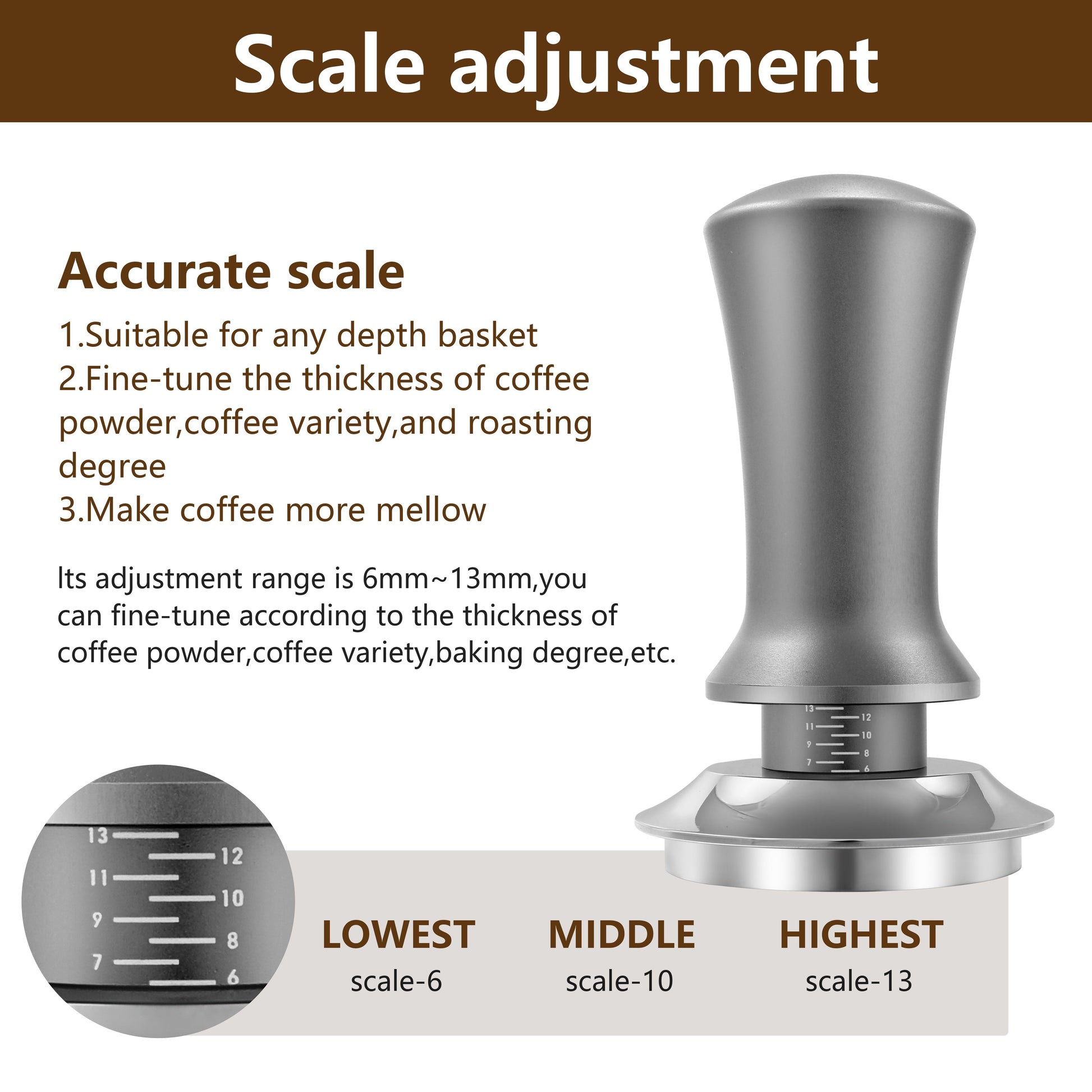 Juego de tamper para espresso de acero inoxidable con base plana de 51/53/58mm y mango con resorte