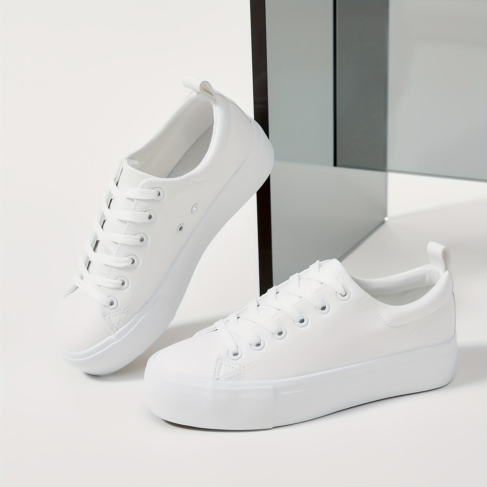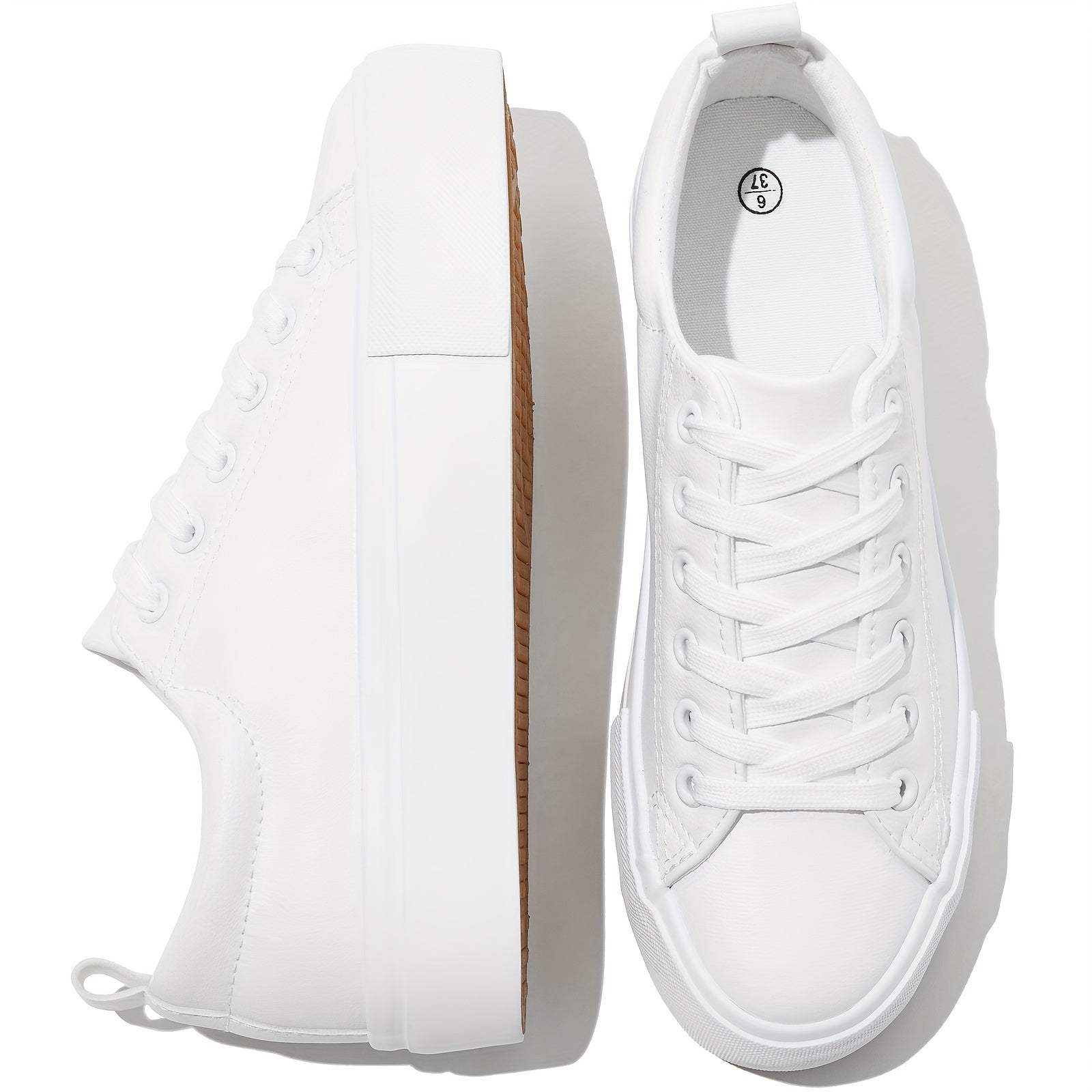 Zapatillas blancas con plataforma para mujer, de temporada, con cordones, estilo casual, punta redonda, suela de goma