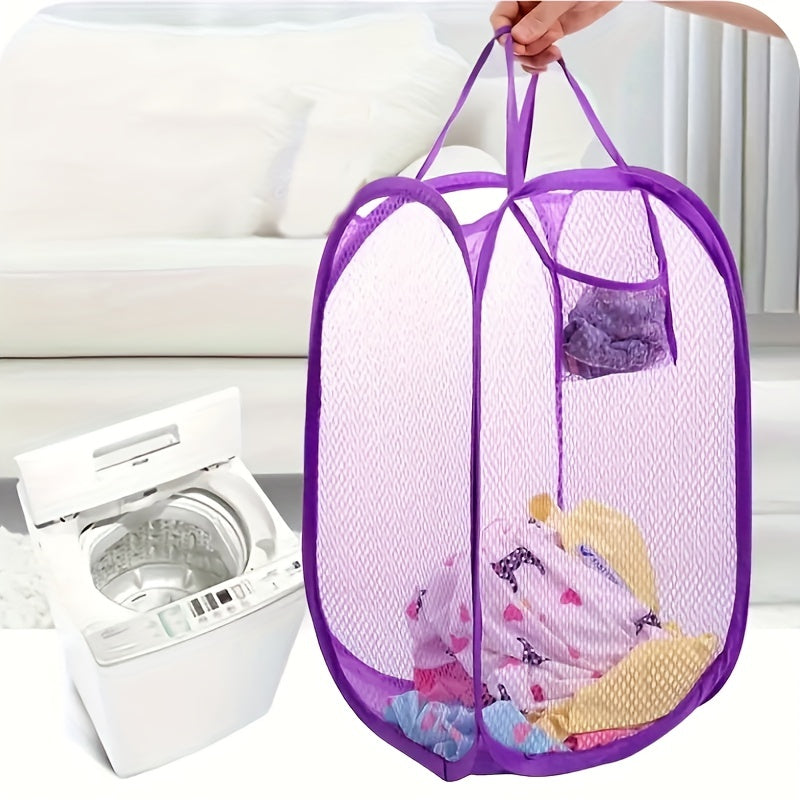 Gran cesta de lavandería con apertura emergente y diseño transpirable de malla, cesta plegable para ropa y juguetes