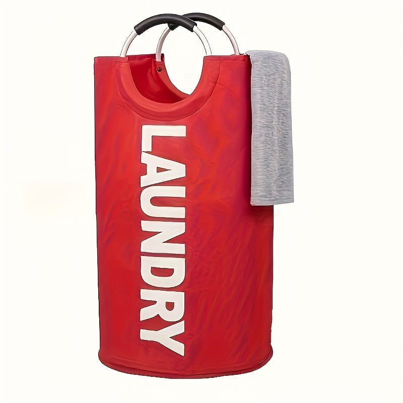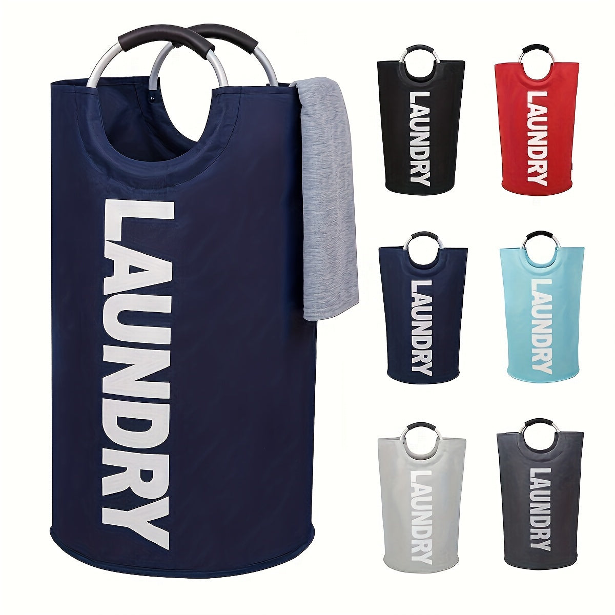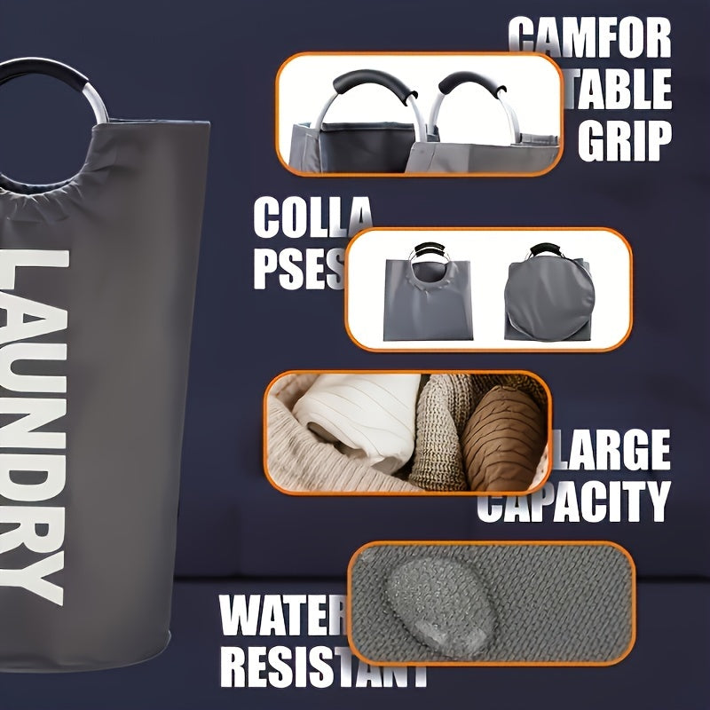 Gran cesta de ropa plegable impermeable con asas acolchadas negra ovalada