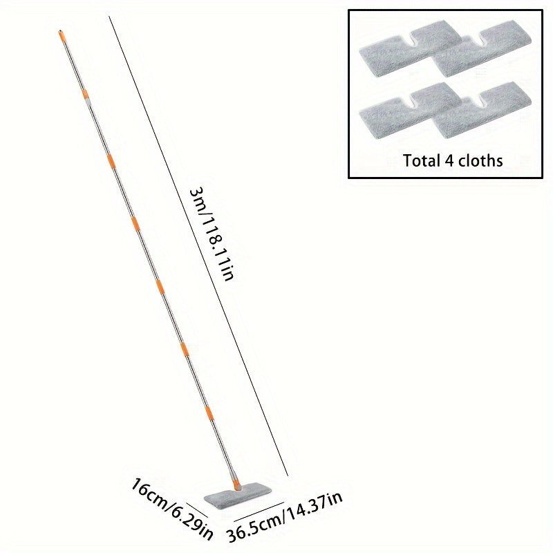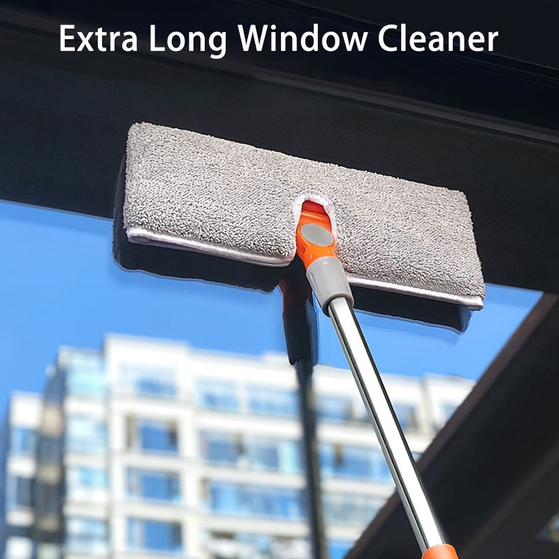 Juego de limpiador de ventanas y cristales extra largo con cabezal de fregona giratorio y 4 almohadillas