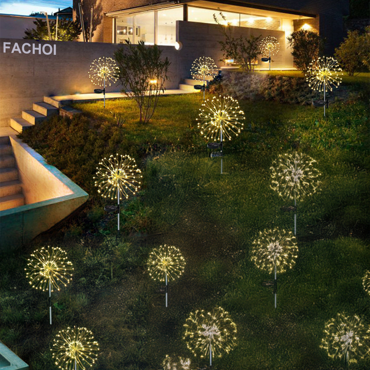 Luces de fuegos artificiales solares 420 LED para exteriores, a prueba de agua, camino, patio, fiesta, boda