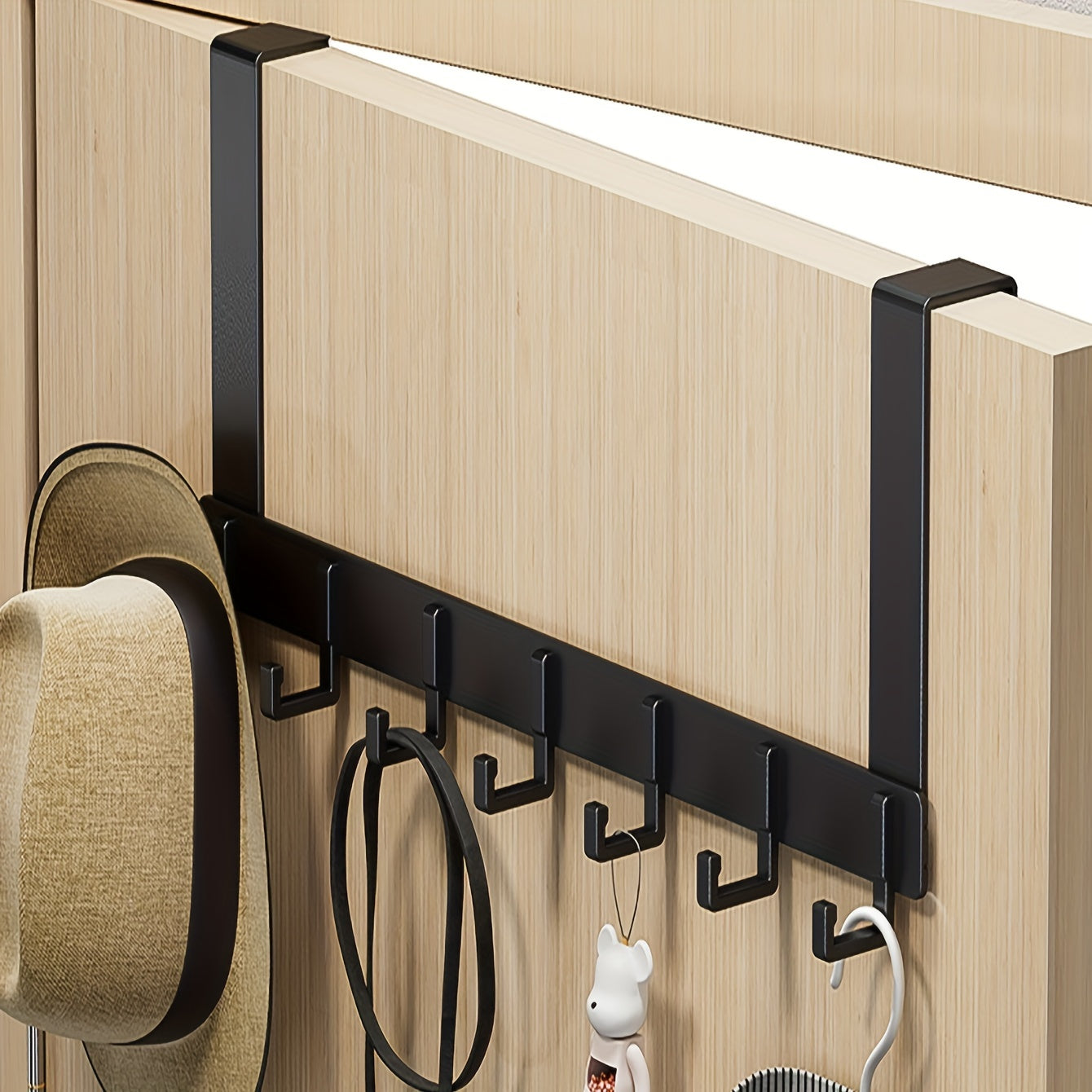 Estante trasero para puerta de aluminio con 6 ganchos para organización de ropa en la entrada