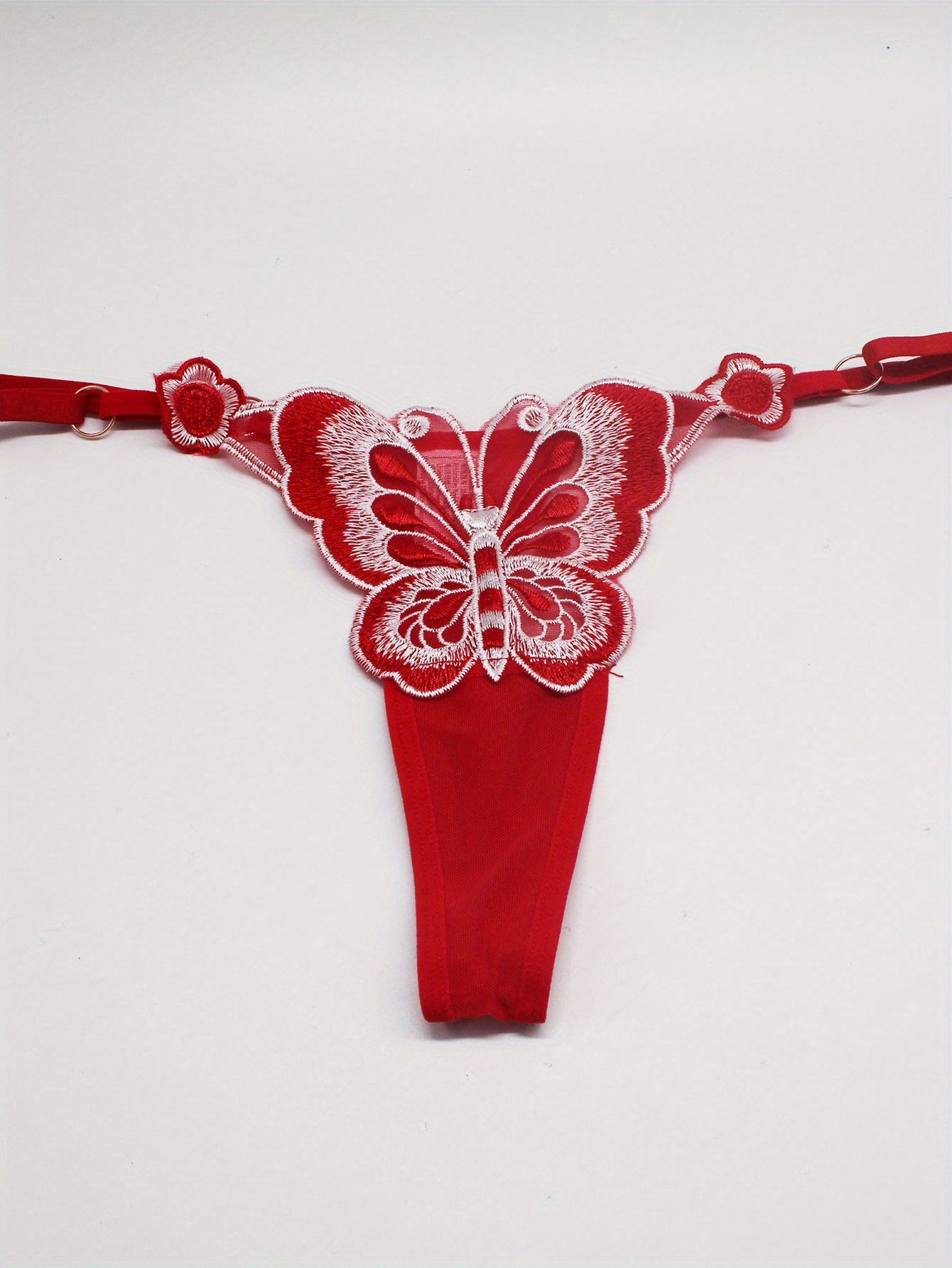 Pack de cinco tangas de mujer con bordado de mariposa, estilo V-String, ajustables, de punto de nylon y lencería