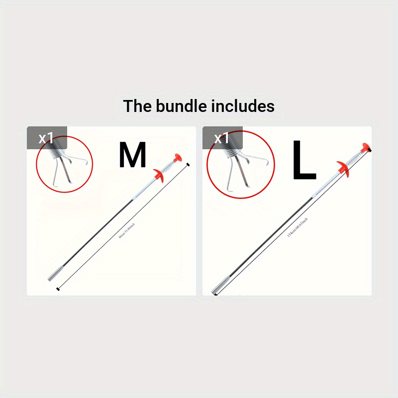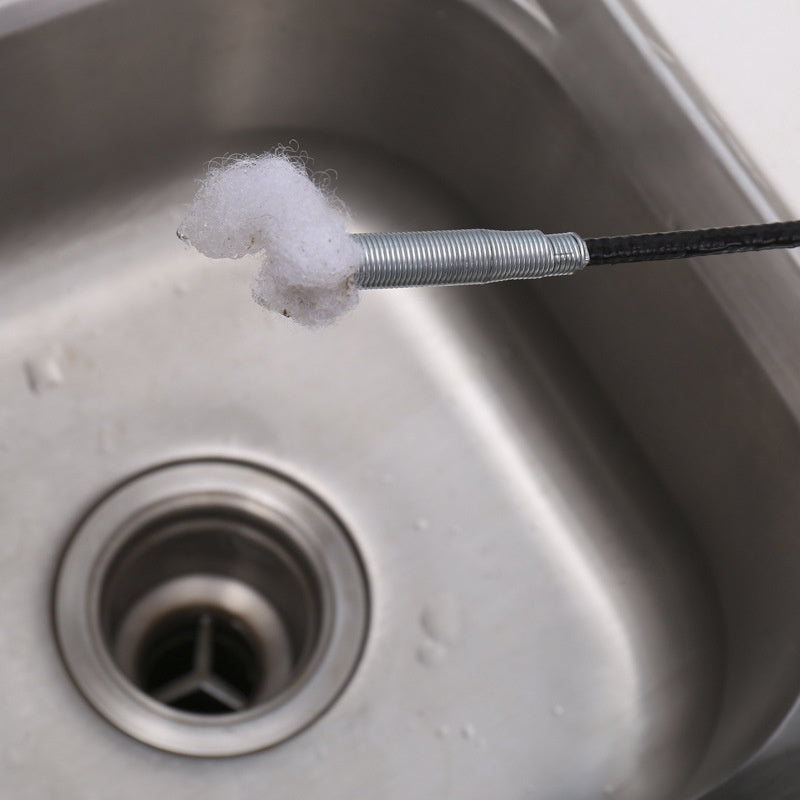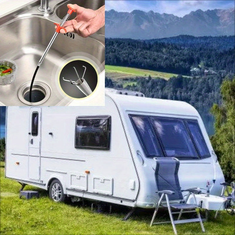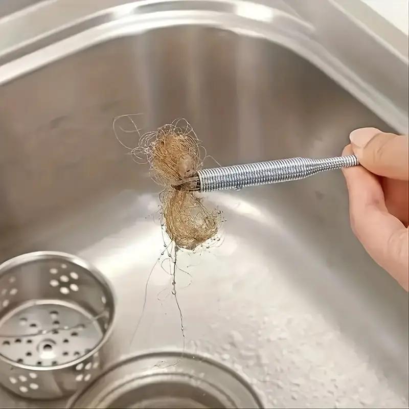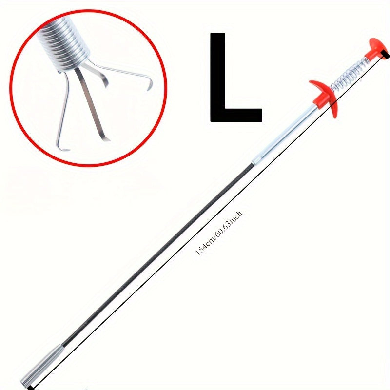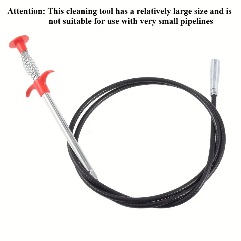 Herramienta flexible para eliminar obstrucciones en desagües de metal con mango rojo para lavabo y inodoro