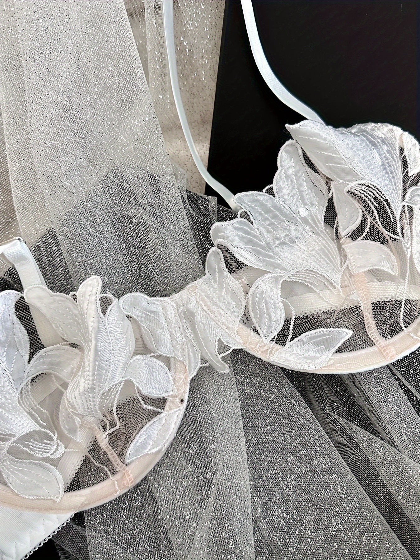 Conjunto de lencería bordada con flores para mujer, sujetador y tanga