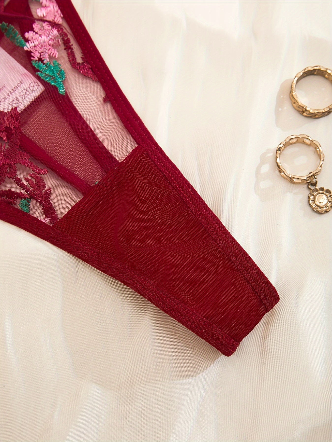 Ropa interior de encaje floral para mujer, tanga sexy, lencería
