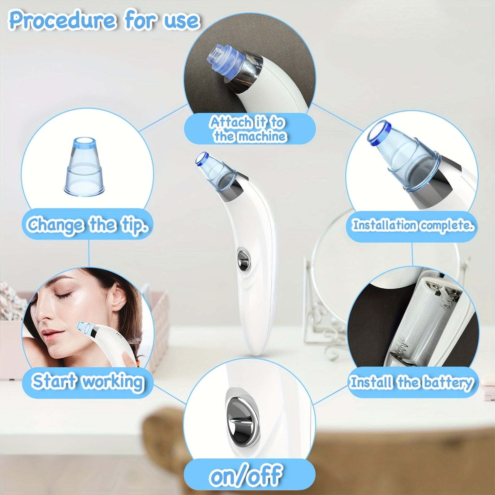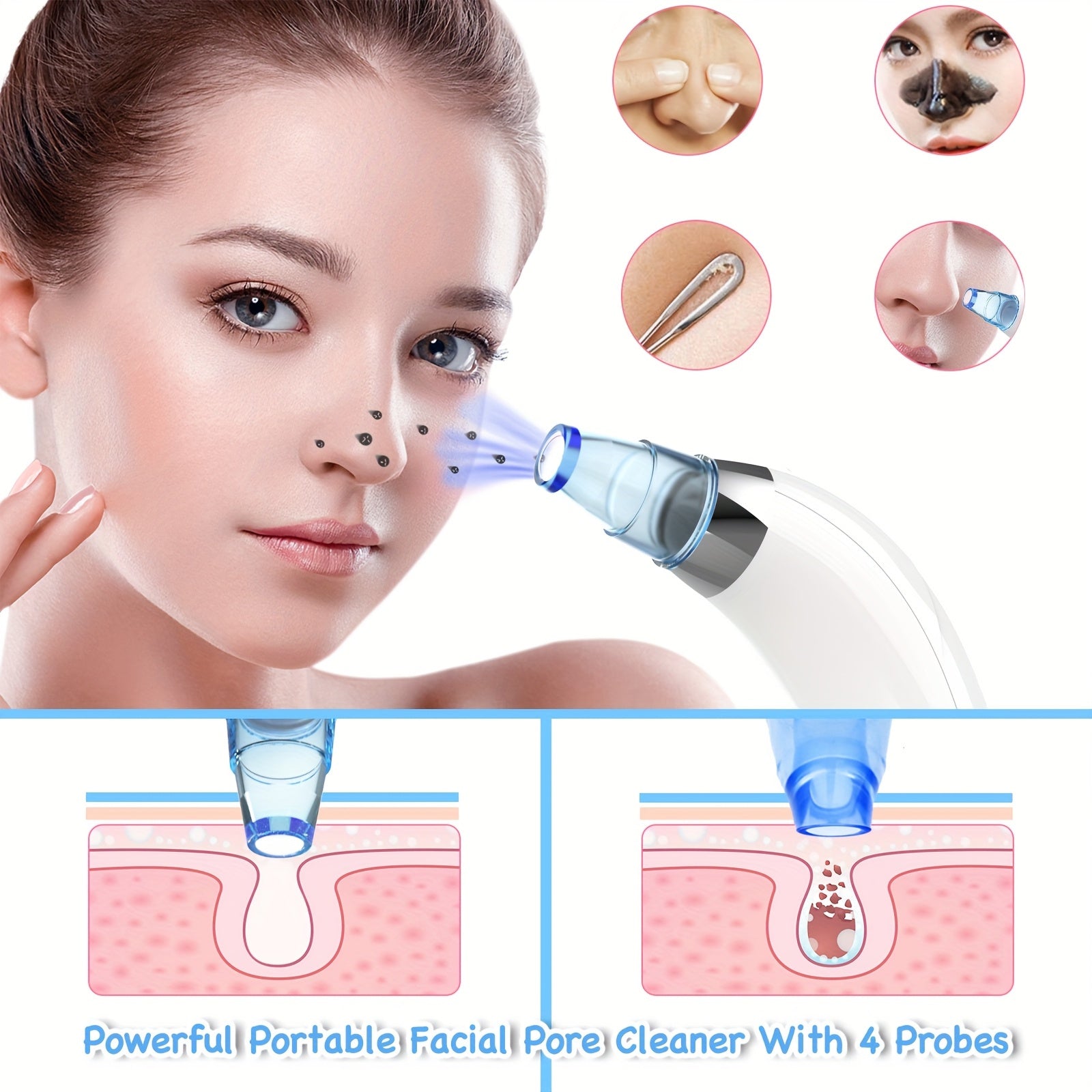 Herramienta para eliminar puntos negros con 4 sondas intercambiables, alimentada por batería, limpia poros para mujeres y hombres