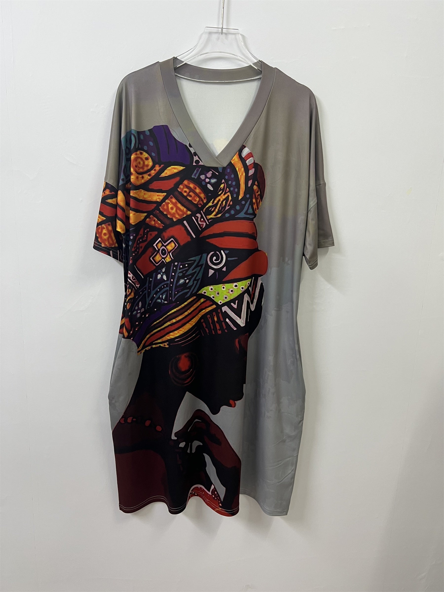 Vestido de mujer con estampado de pañuelo geométrico talla grande para verano, casual, túnica