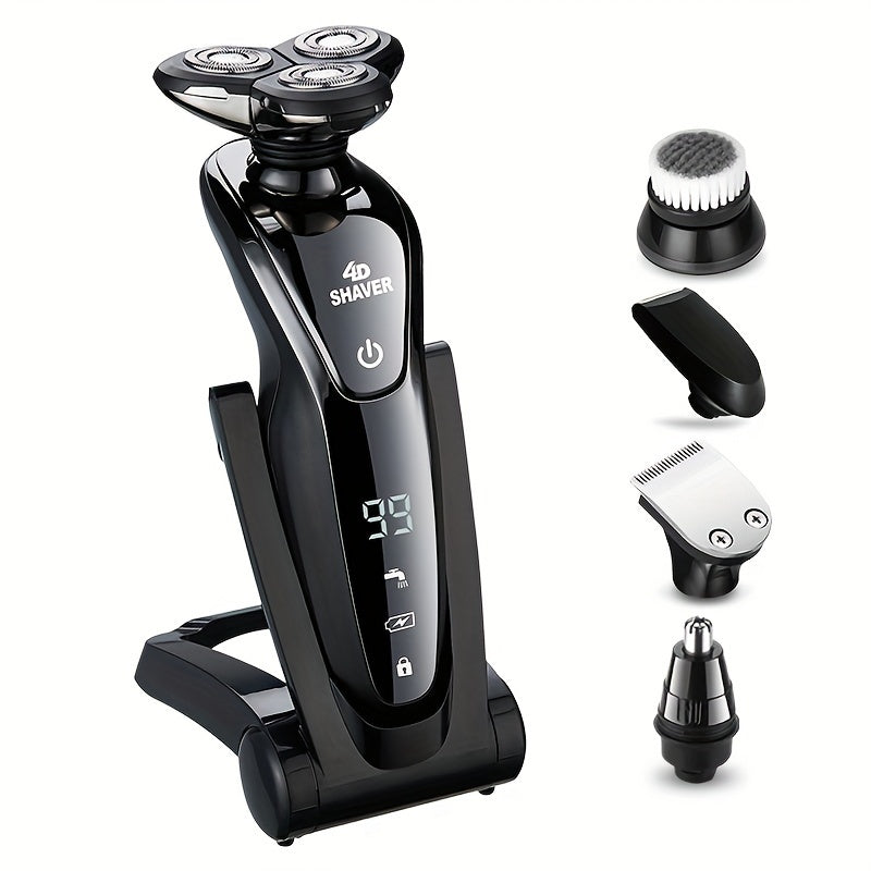 Afeitadora eléctrica para hombres con recortadores de nariz y patillas, cepillo de limpieza facial, cuchillas de acero inoxidable, recargable, más de 60 minutos de autonomía