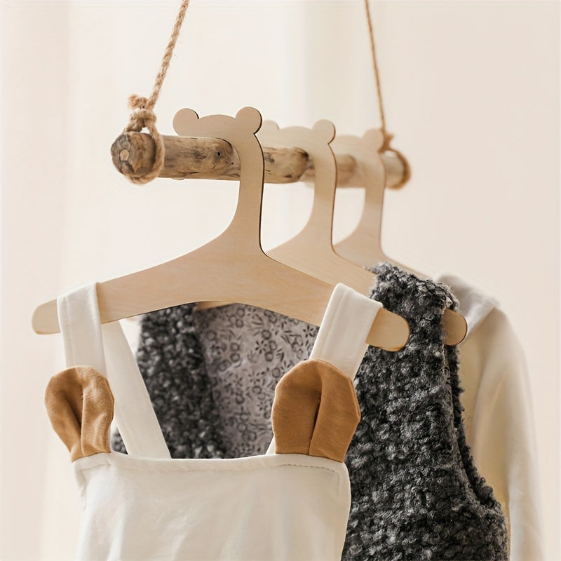 Juego de 5 o 10 perchas de madera con forma de oso para organización de armario