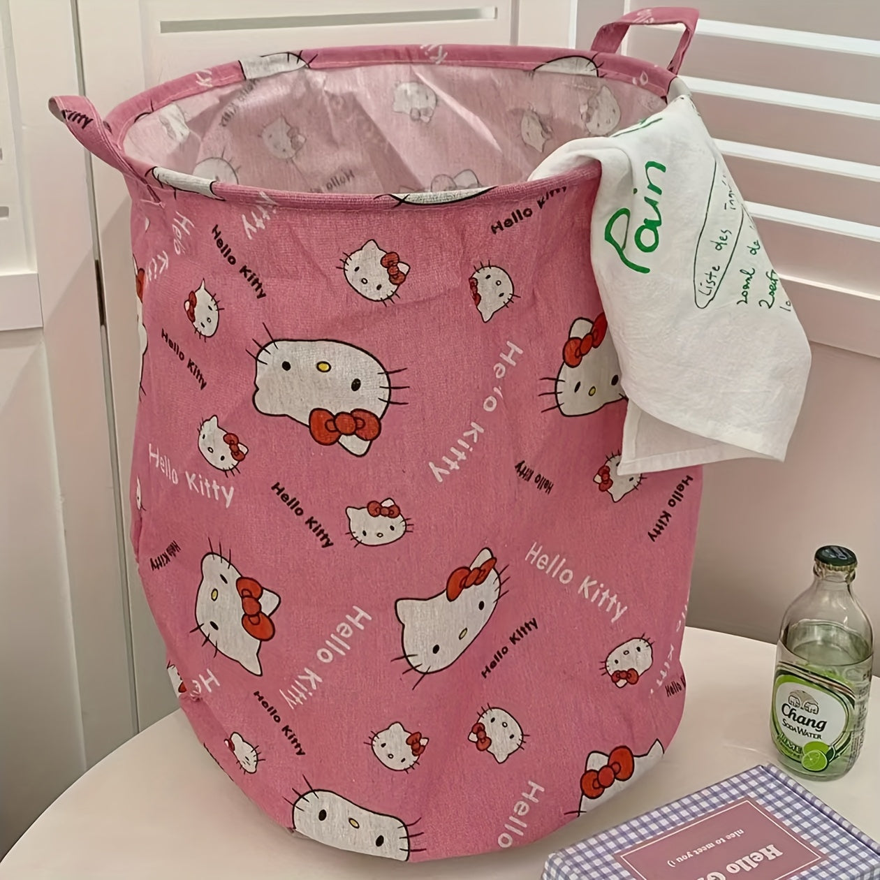 cesta de ropa redonda de tela con asa para almacenamiento en dormitorio