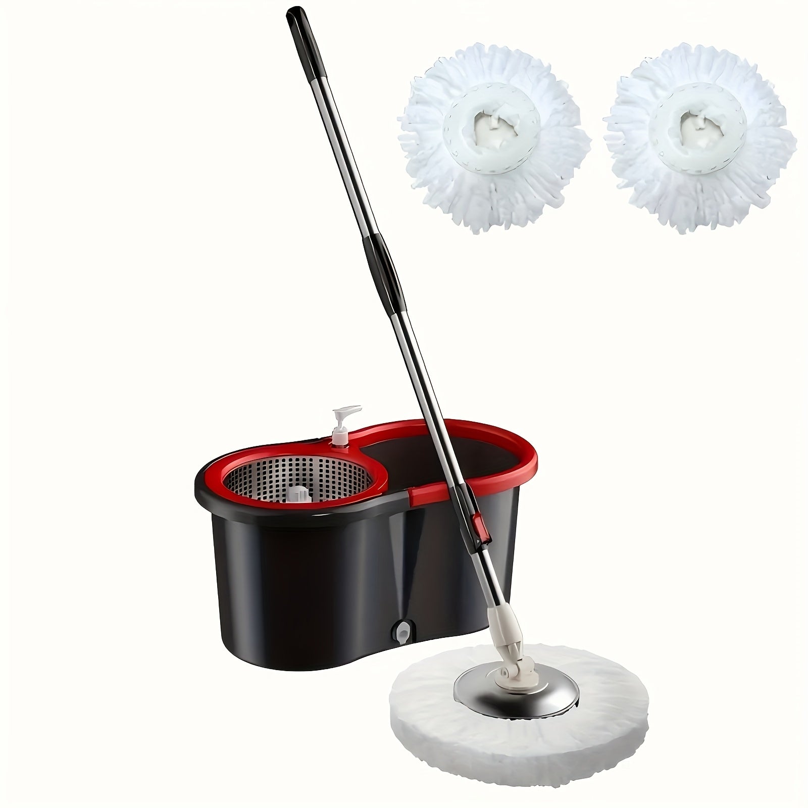 Juego de fregona y cubo giratorio con 2 cabezales de fibra, cubo giratorio de 360°