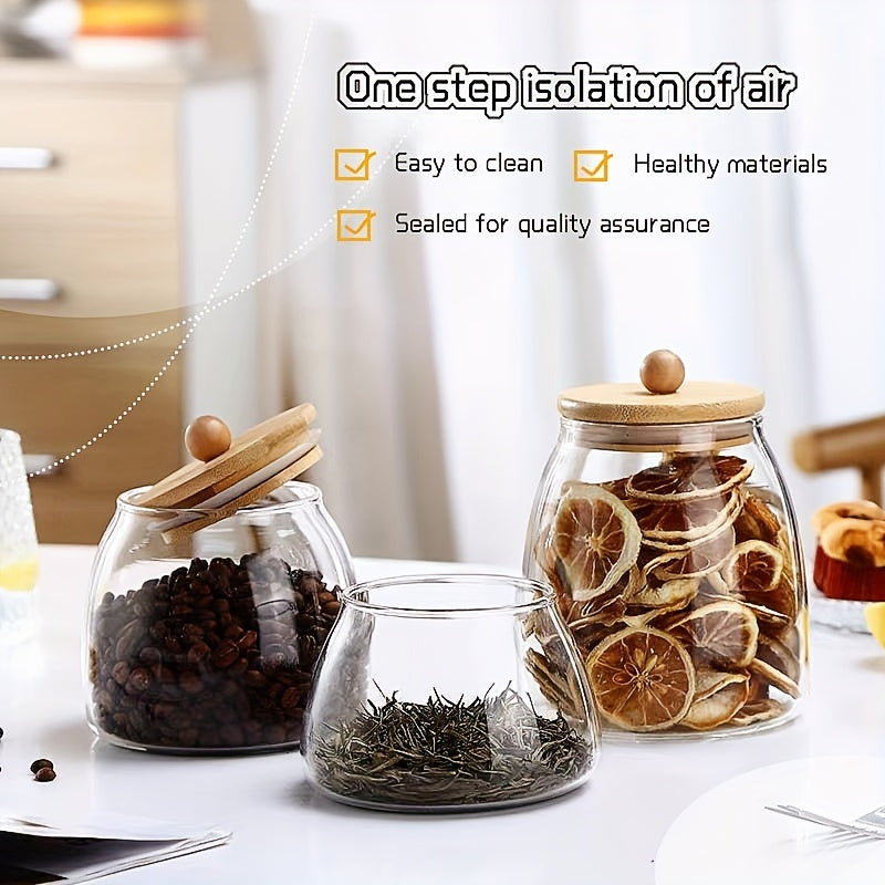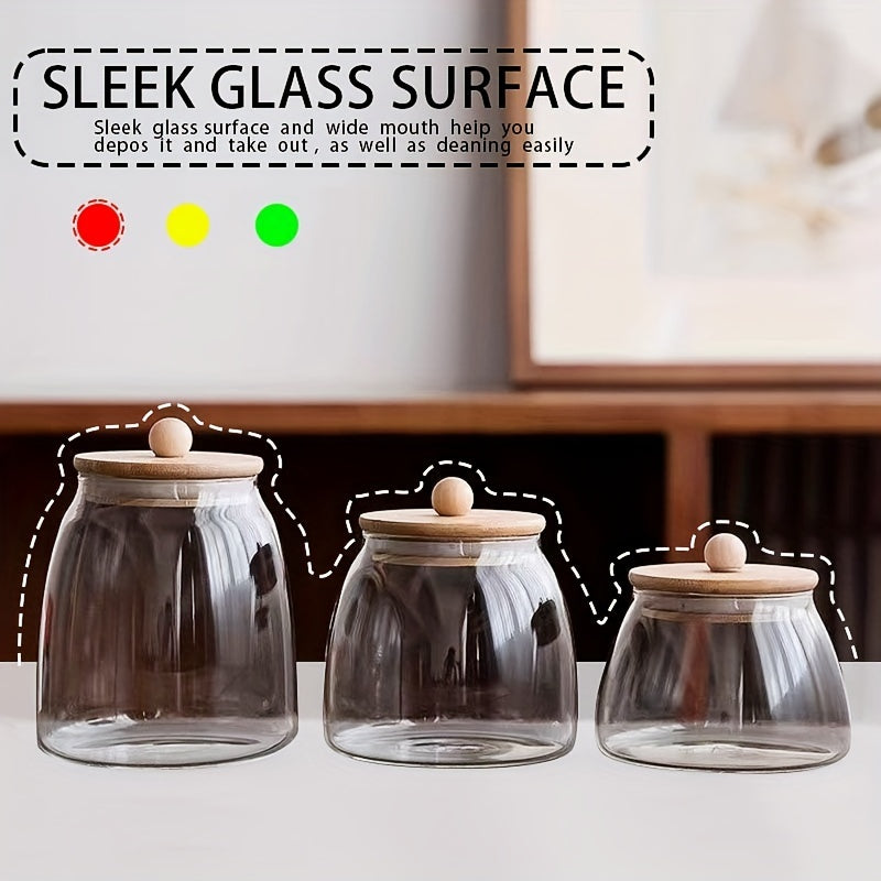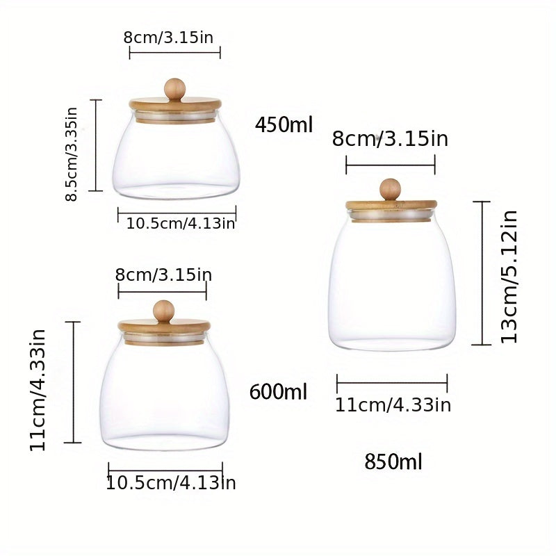 Recipiente de vidrio para almacenamiento de alimentos con tapa de madera para dulces y especias