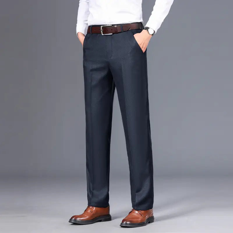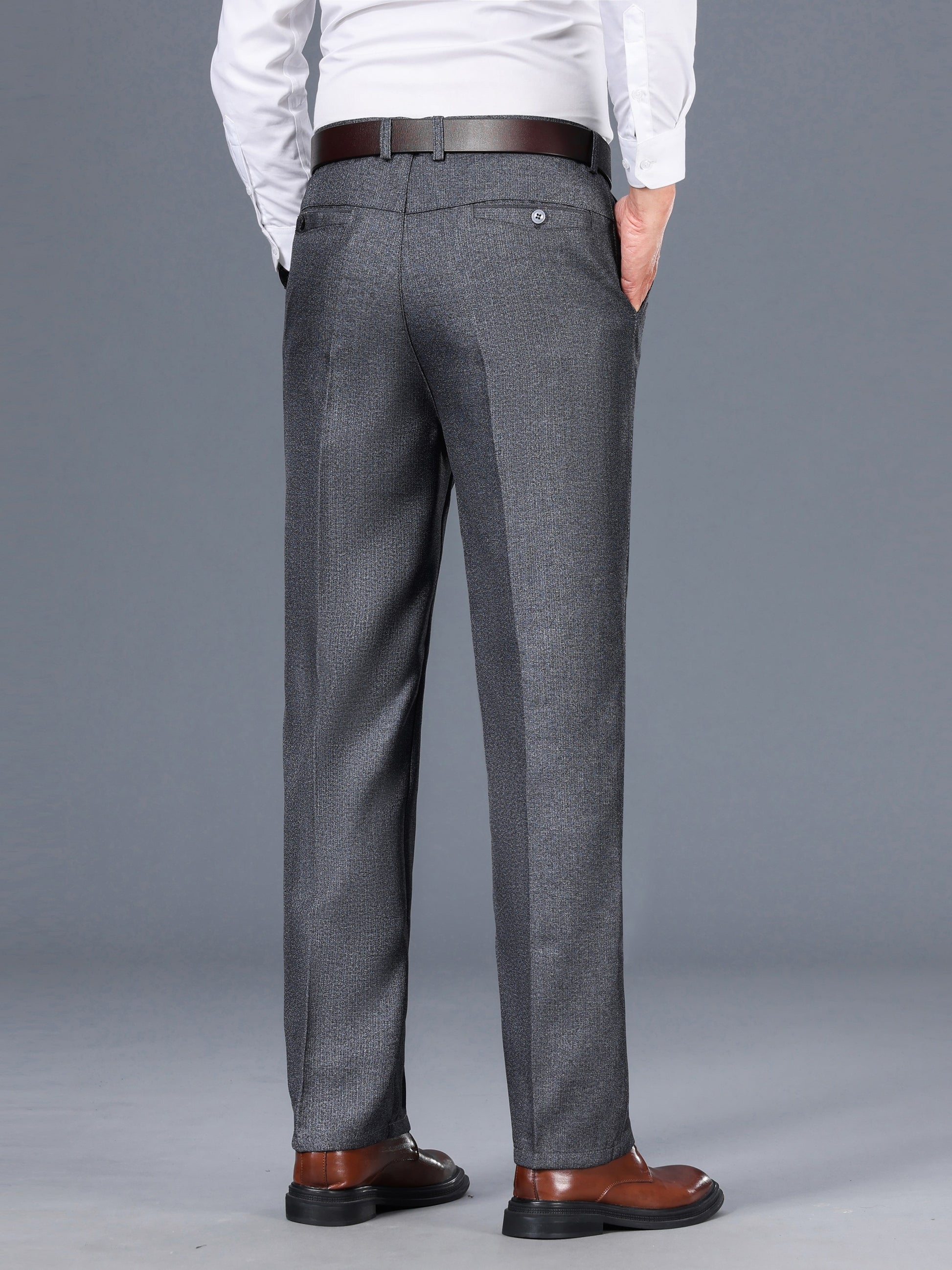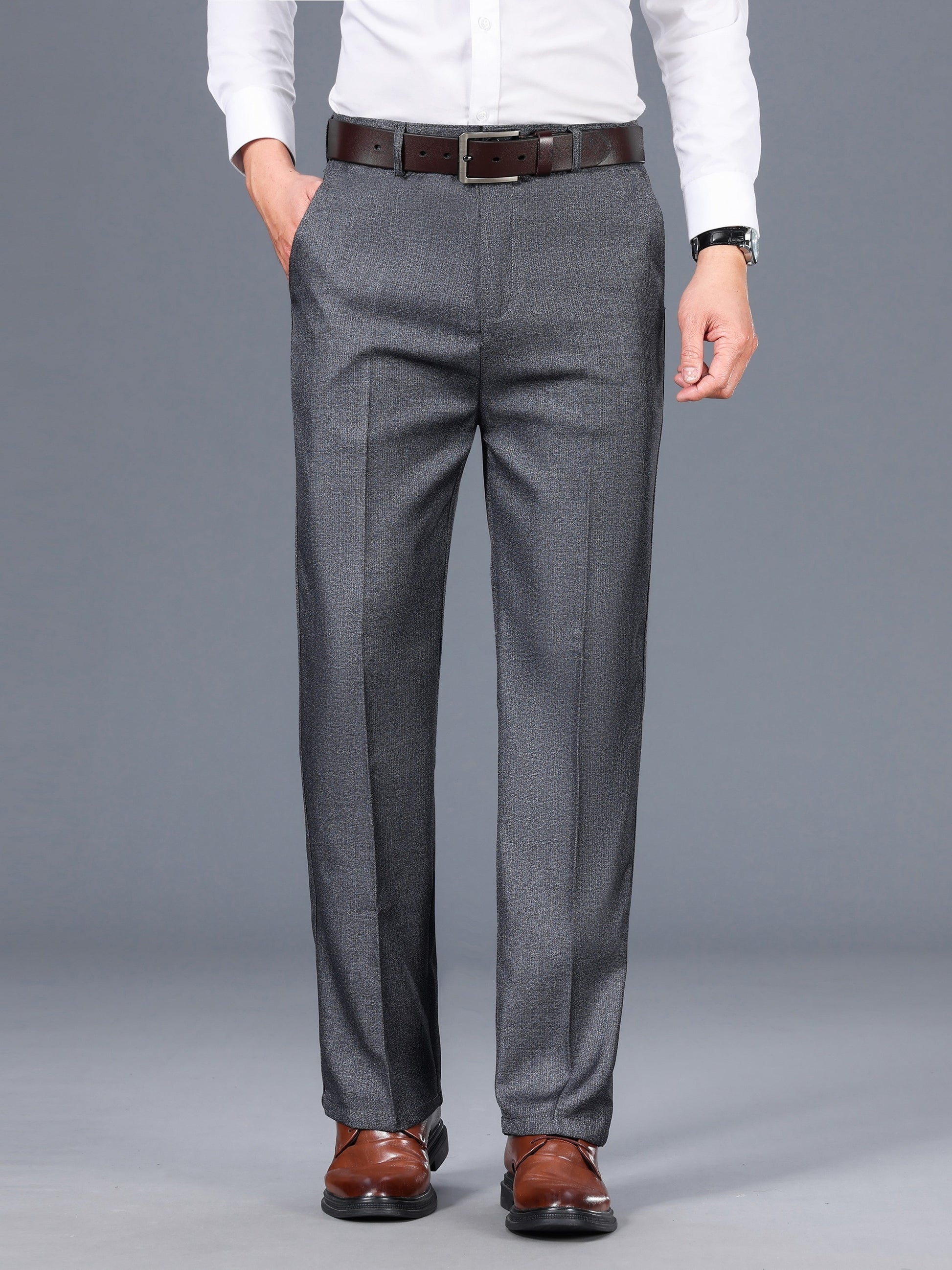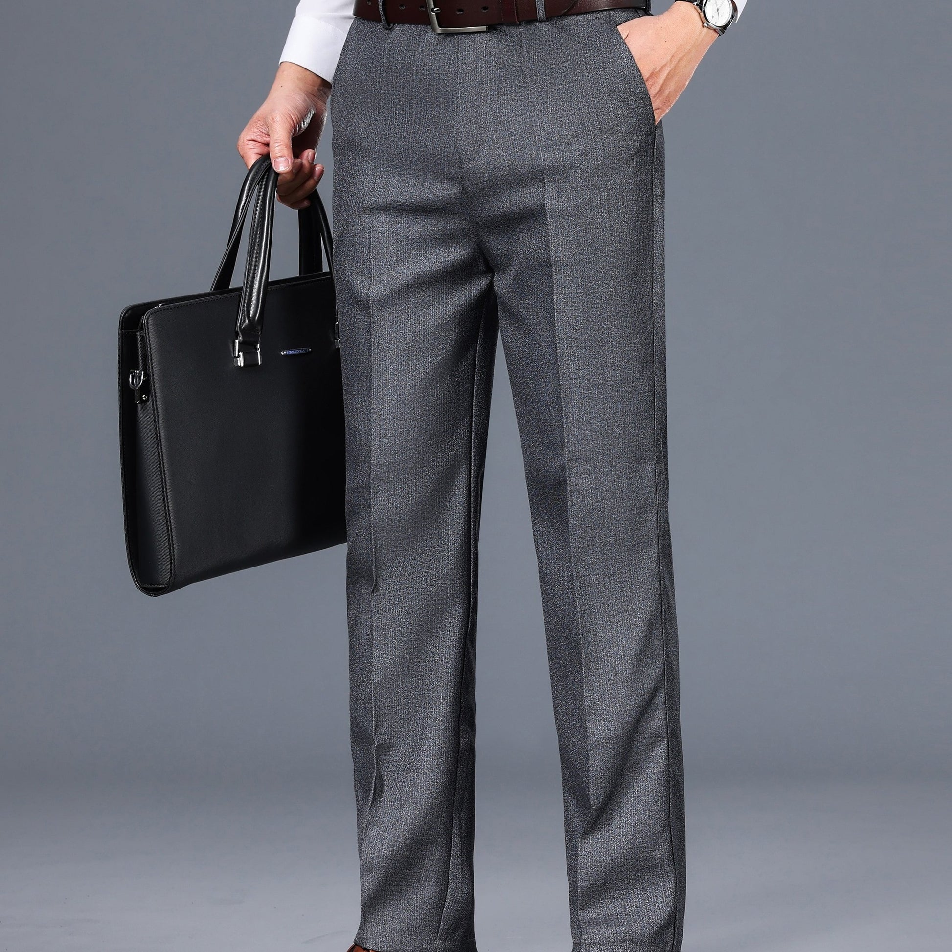 Pantalones de vestir grises para hombre, corte regular, poliéster, bolsillos inclinados, negocio formal, primavera y otoño