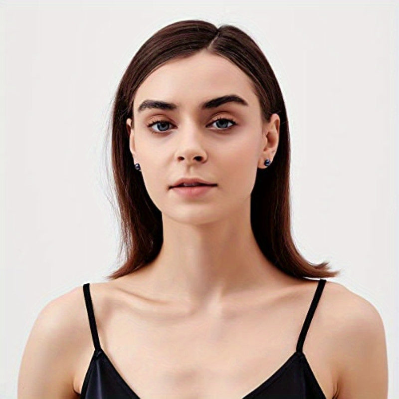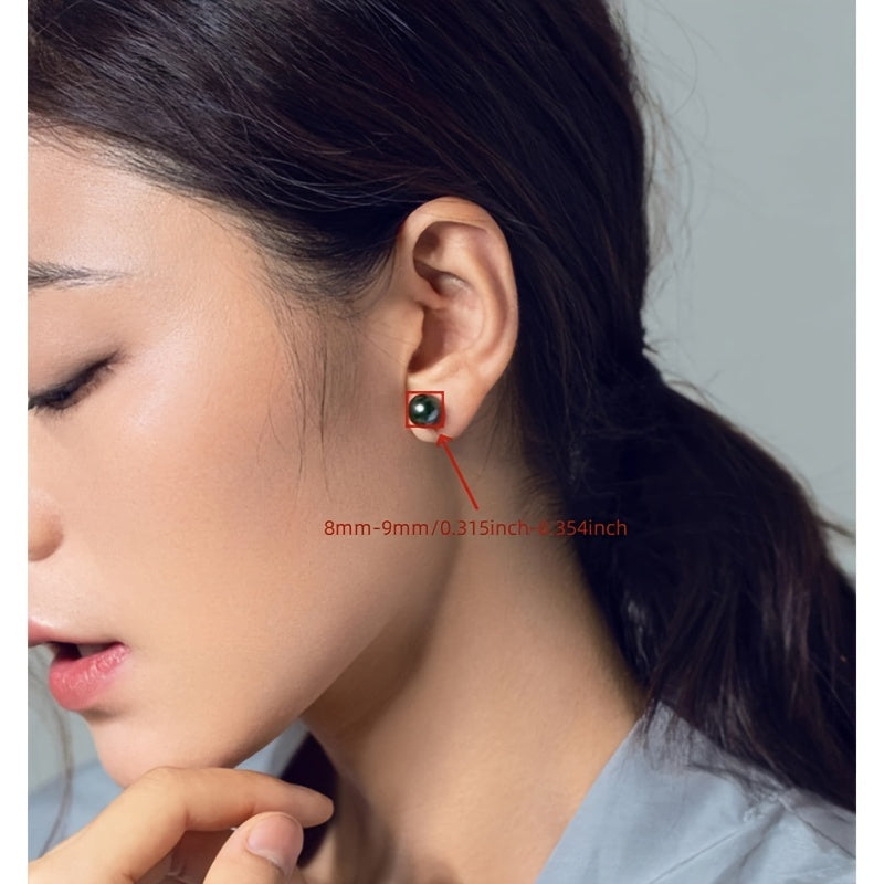 Pendientes de perla de agua dulce negra de 8-9mm con pasadores de plata de ley para mujer
