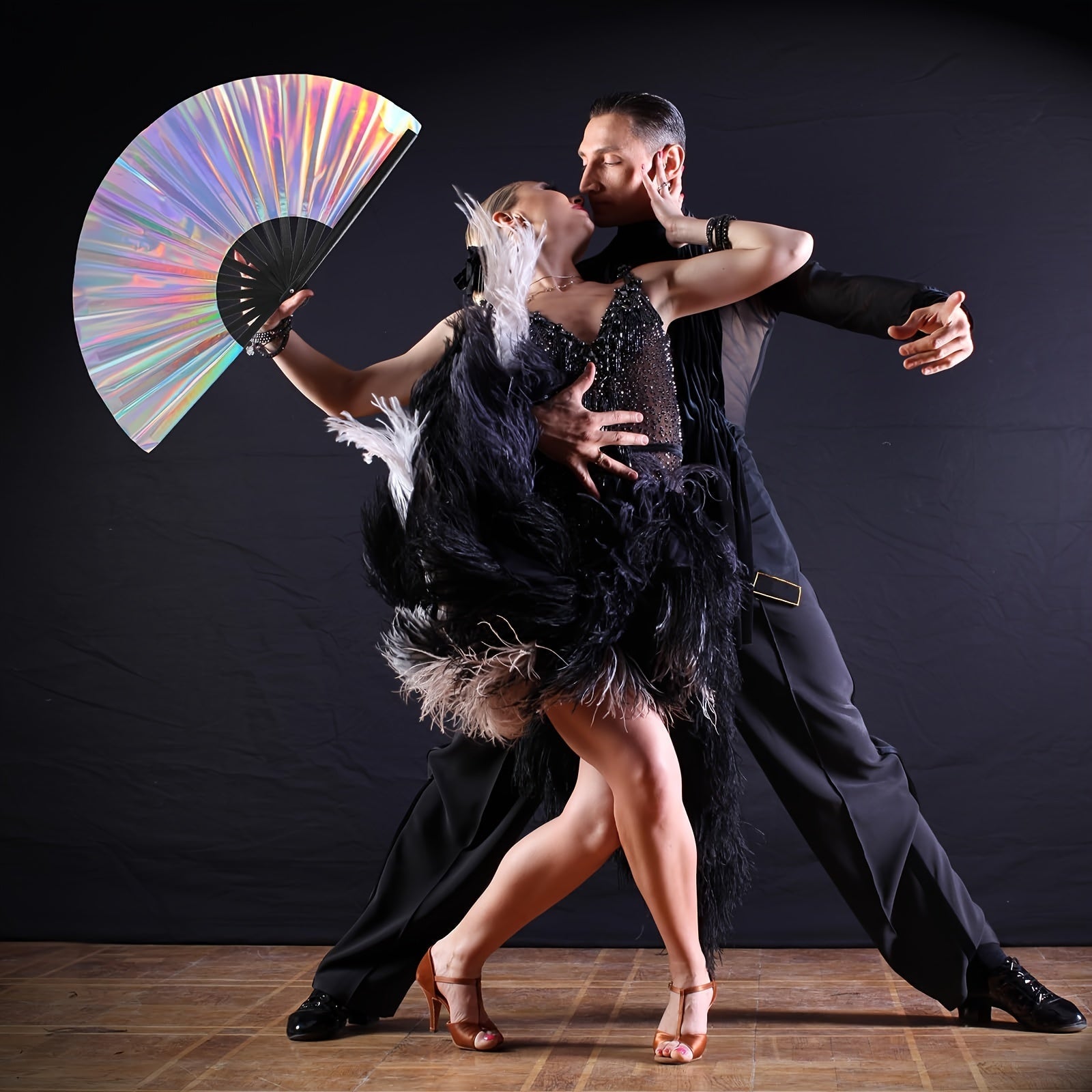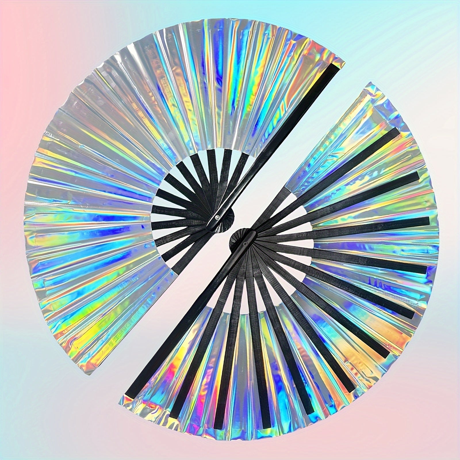 Fan de fiesta grande plegable de madera, arcoíris, festival, accesorio para baile disco
