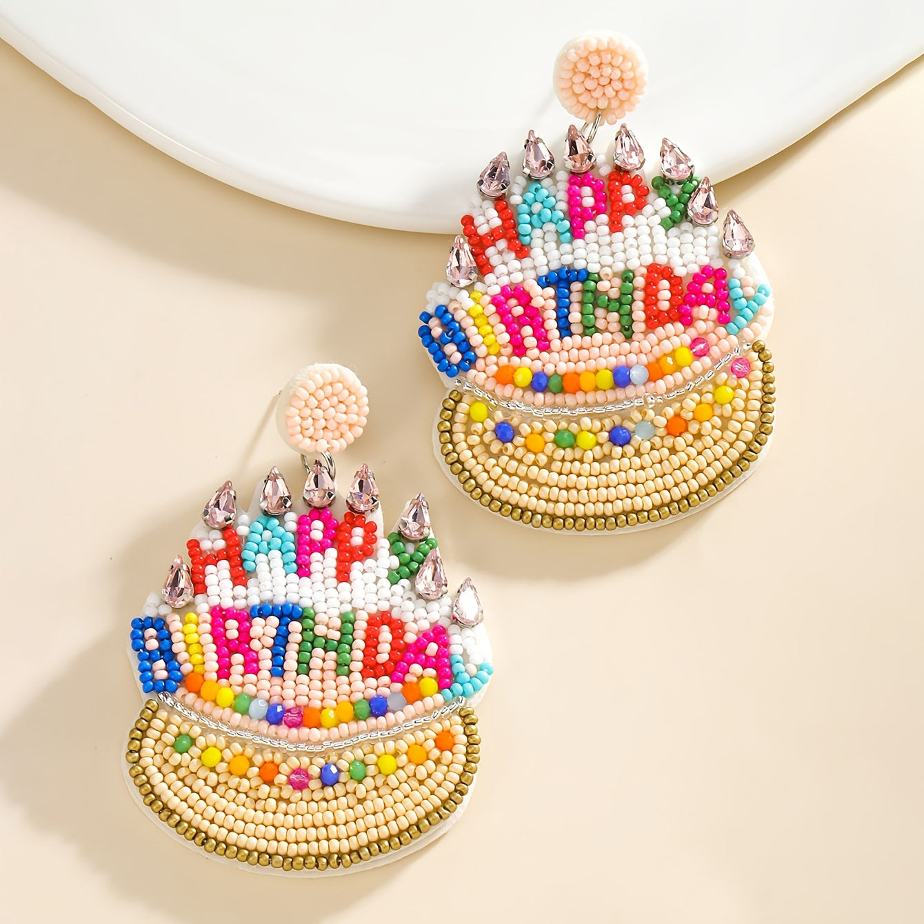 Pendientes de pastel de cuentas bohemias para mujer, colgantes de pedrería, pasadores de acero inoxidable