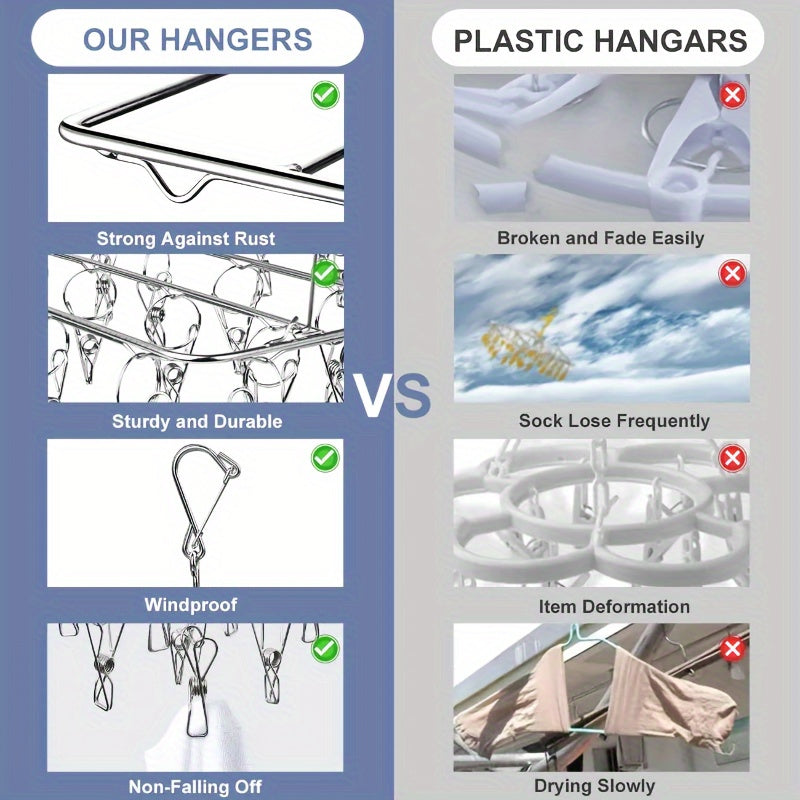 Secadora de ropa de acero inoxidable con 35 clips, gancho giratorio a prueba de viento para uso en interiores y exteriores