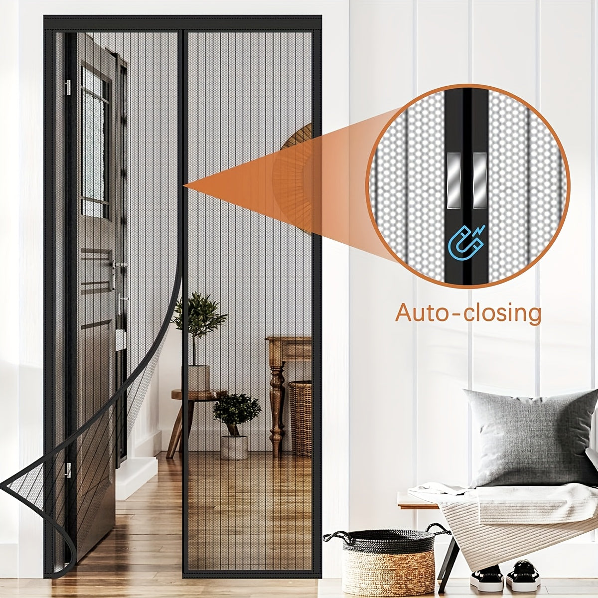 Puerta de pantalla magnética de malla resistente para prevención de mosquitos, entrada sin manos