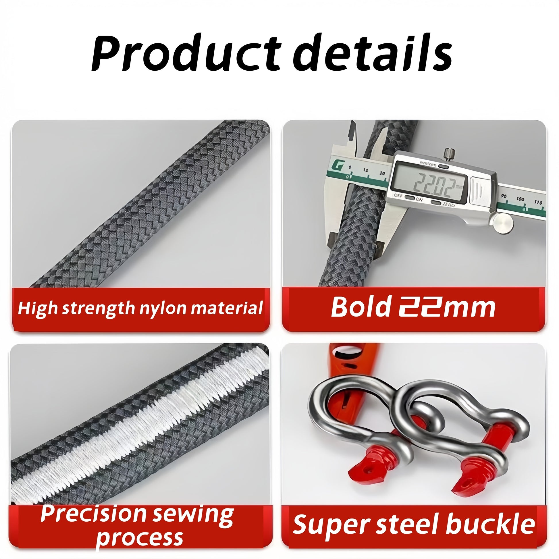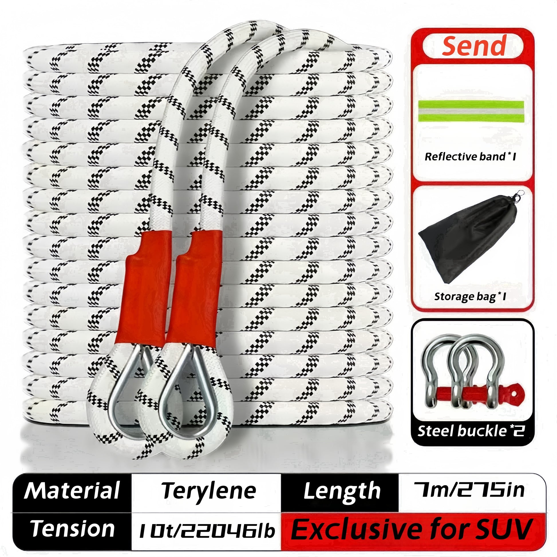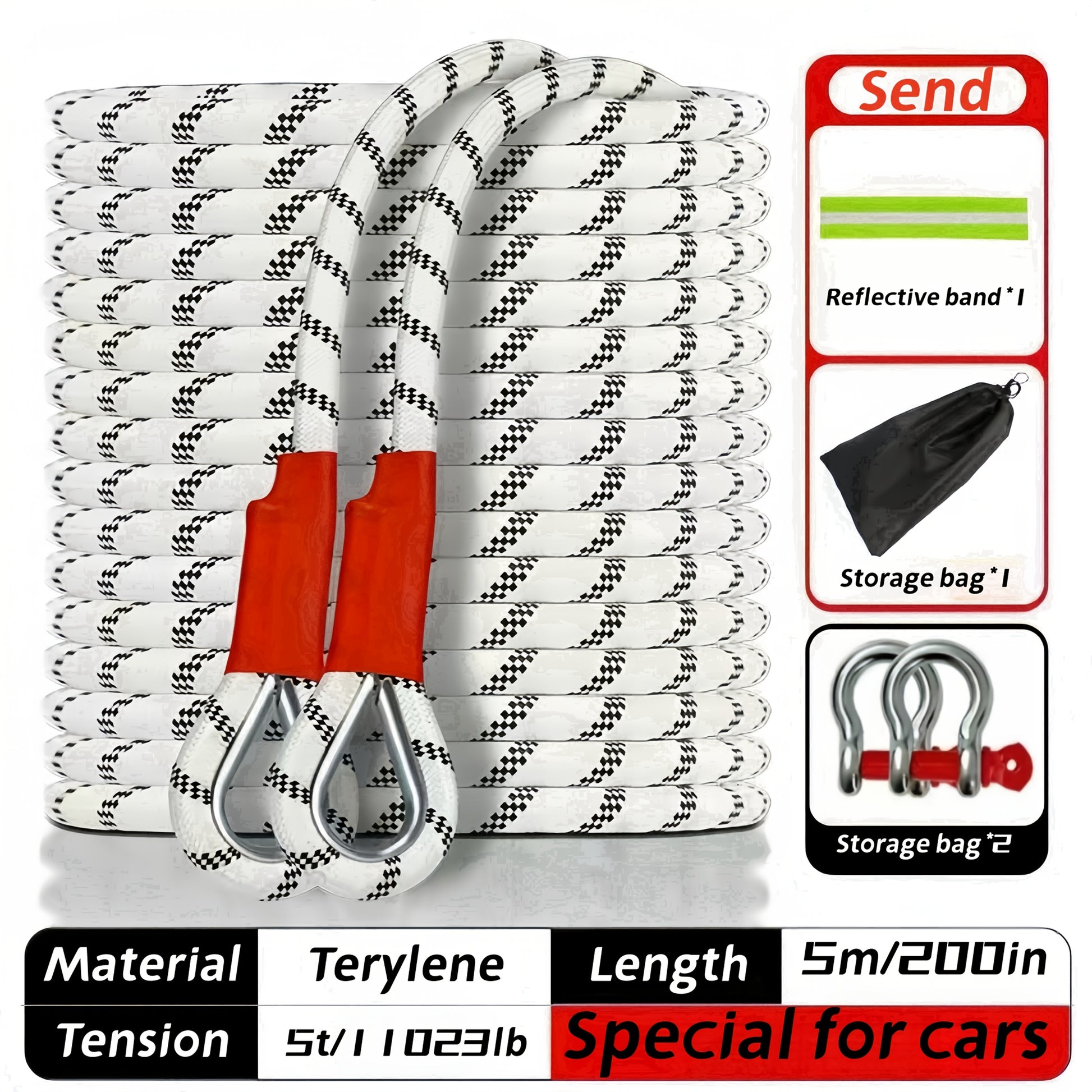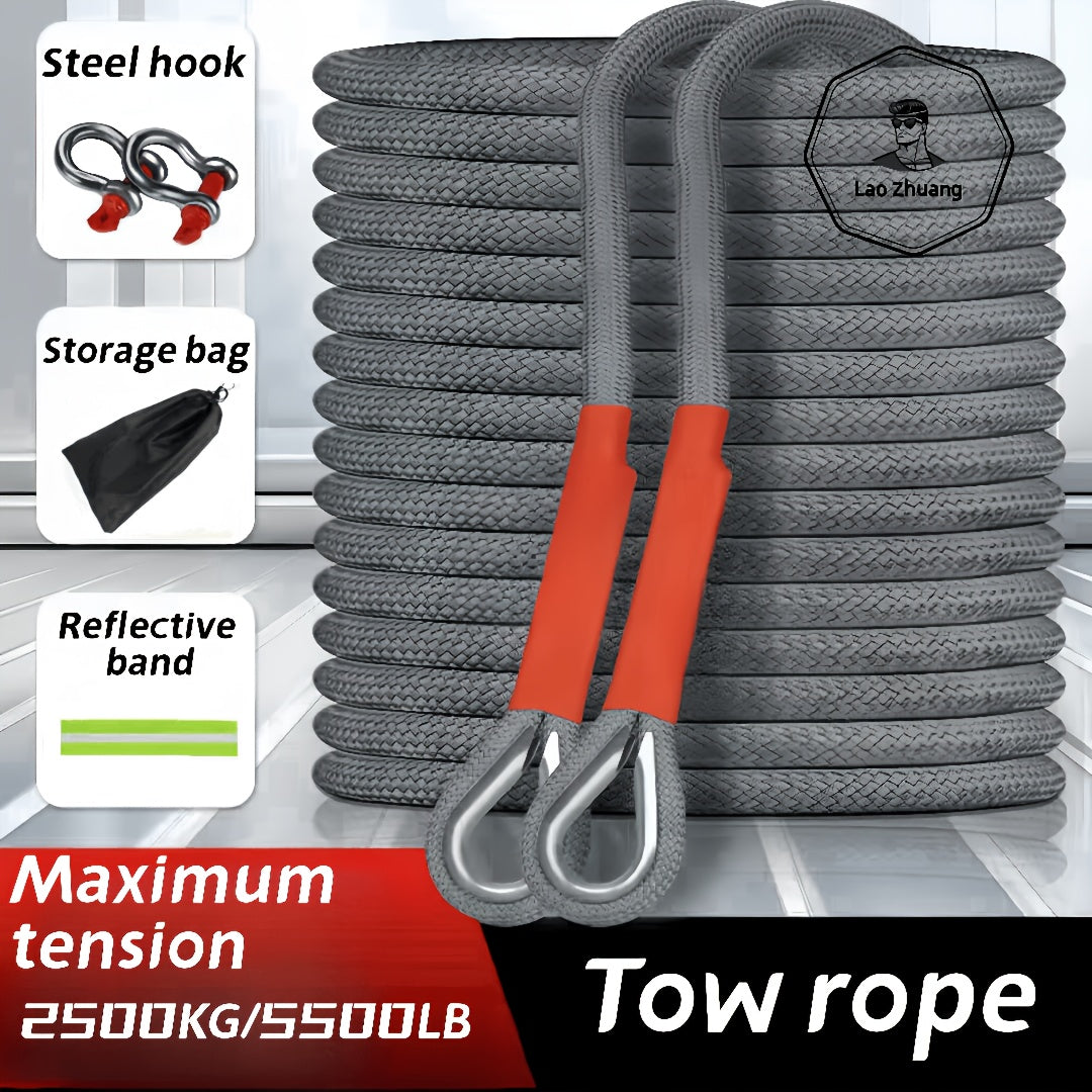 Cuerda de remolque de alta resistencia 5500 lb, recuperación de emergencia para coche, poliéster, gancho de acero reflectante