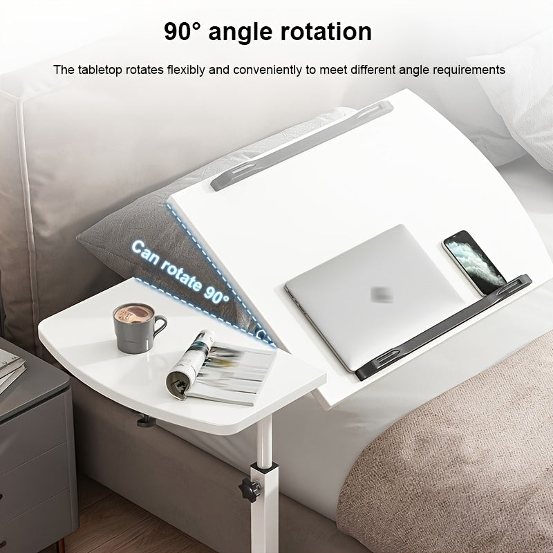 Mesita de noche ajustable en altura y giratoria con tablero de fibra de madera y estructura de metal para dormitorios y hogares