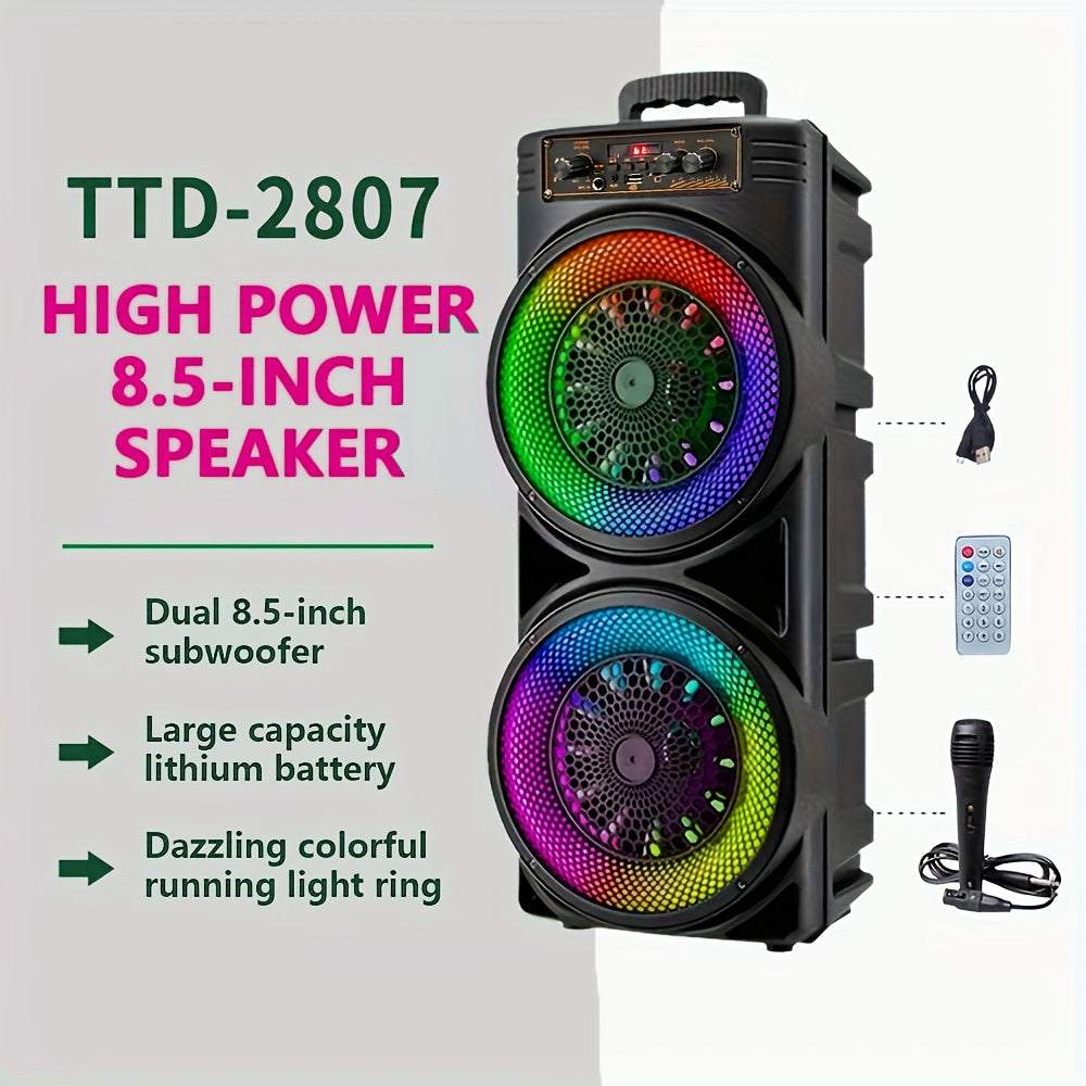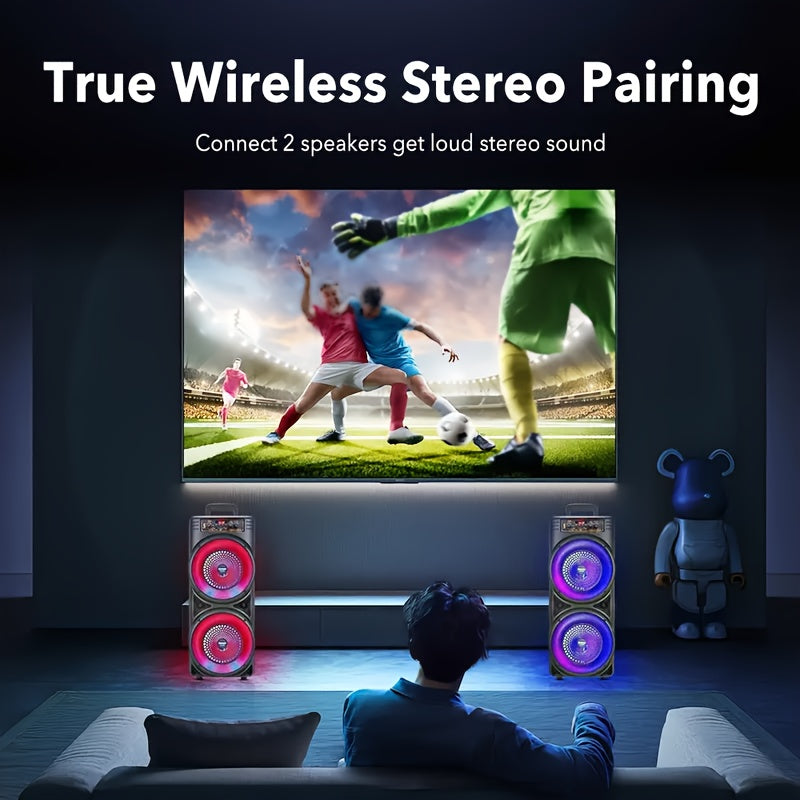 Altavoz estéreo Bluetooth portátil de alta potencia con luces LED, USB, inalámbrico, refuerzo de graves, audio de alta resolución