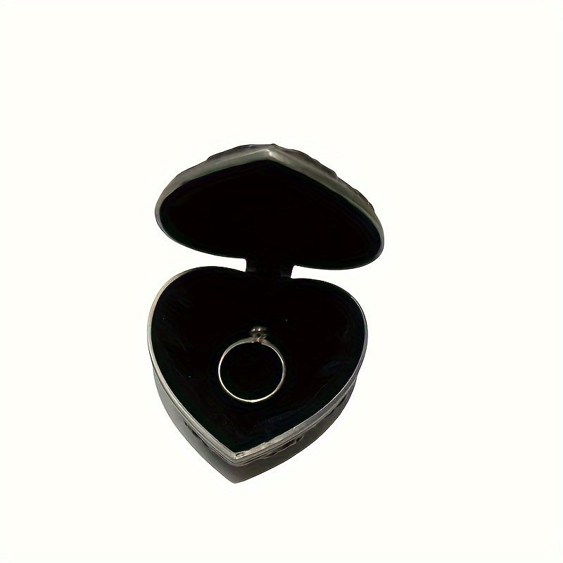 Joyero de estilo bohemio en forma de corazón de plata con patrón floral y soporte para anillos