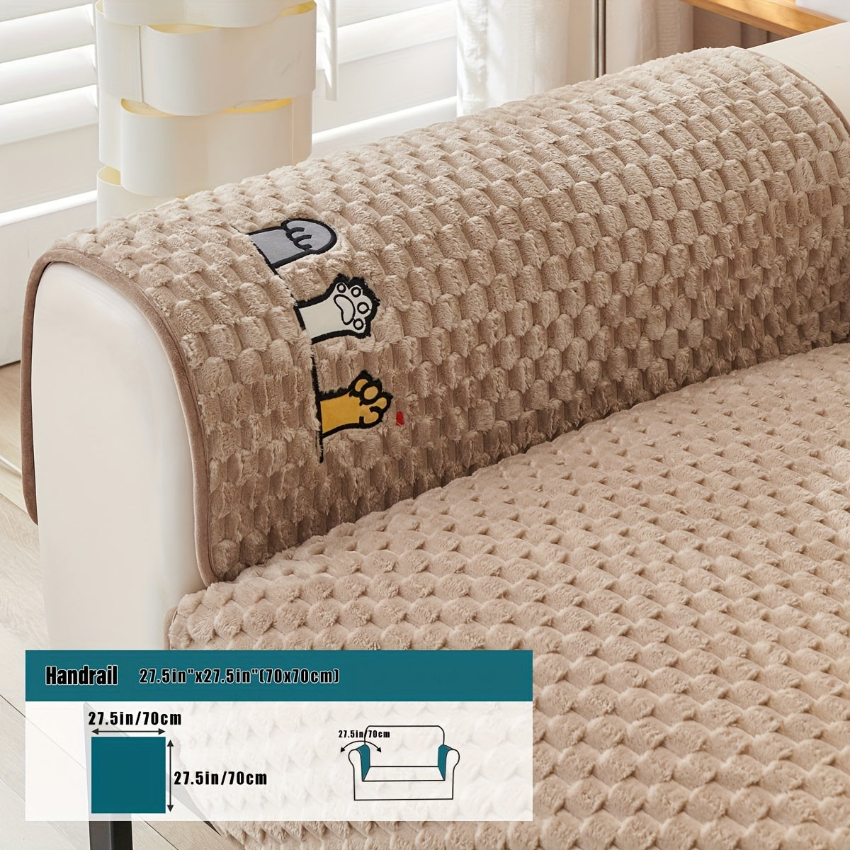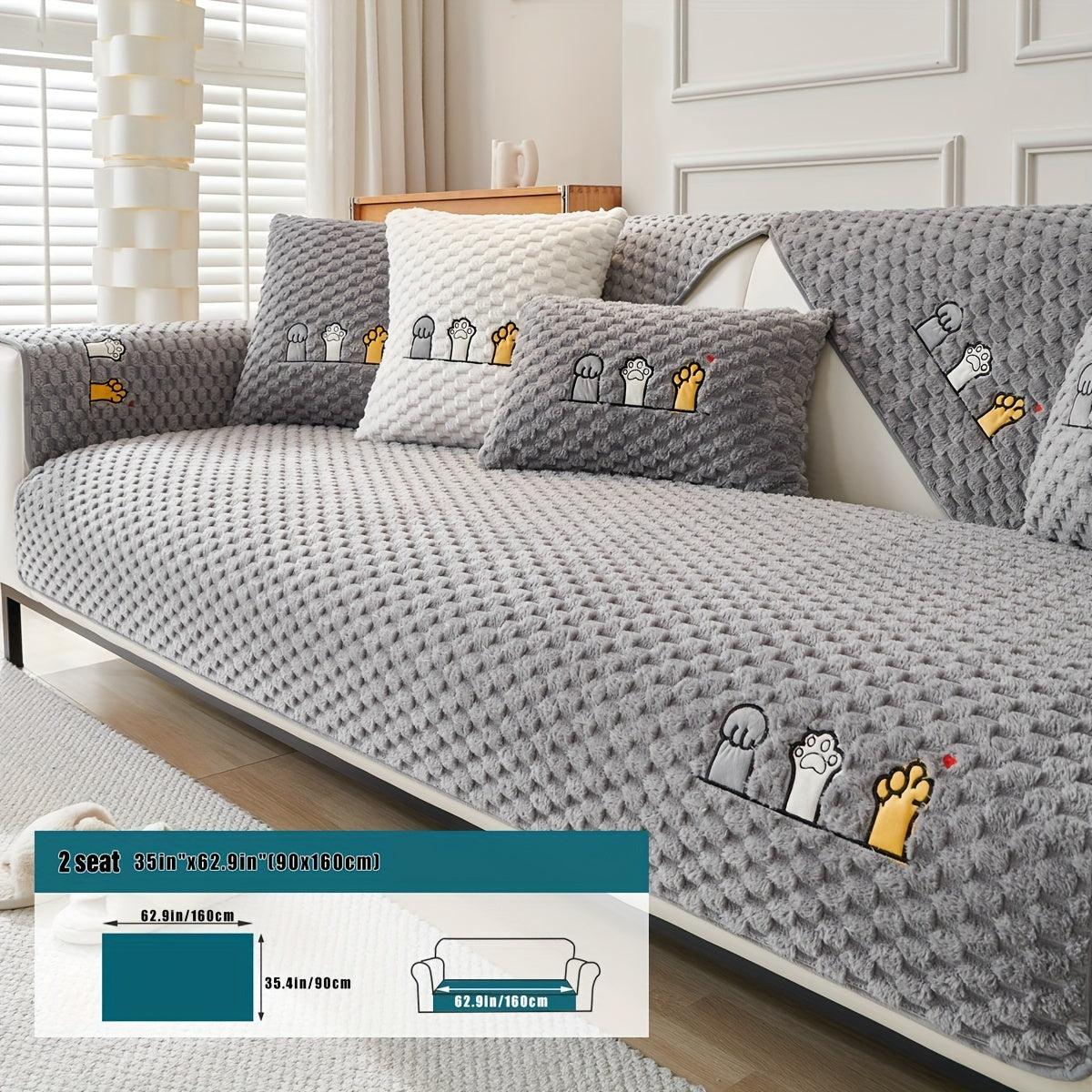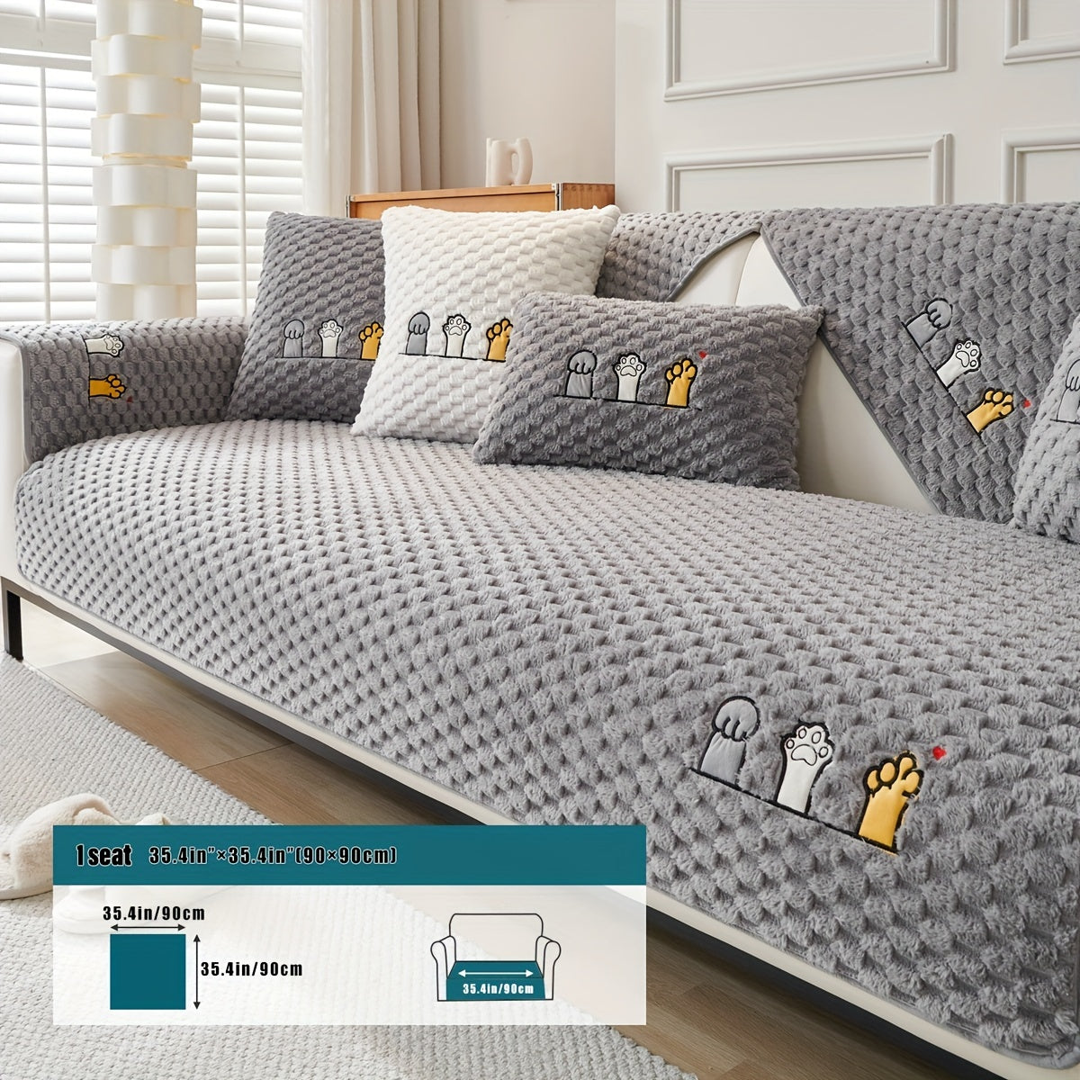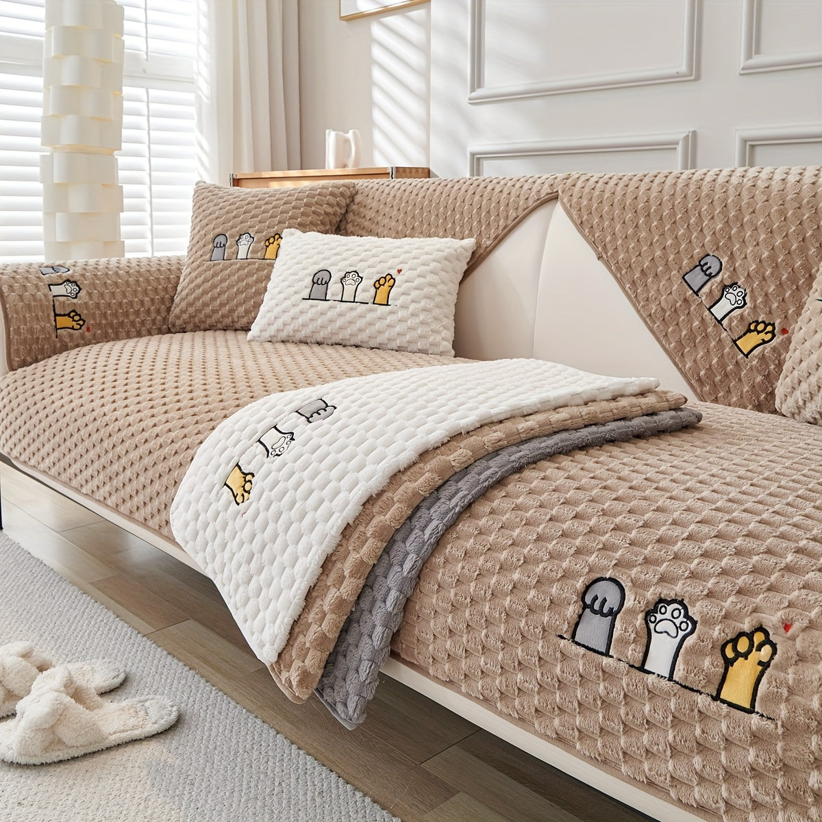 Funda de sofá de terciopelo con bordado de perro de dibujos animados, antideslizante, de felpa gruesa, protector de muebles
