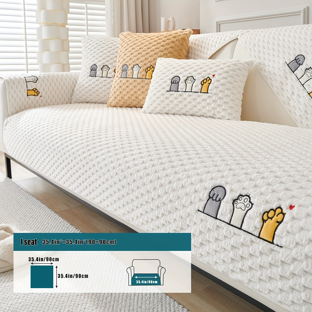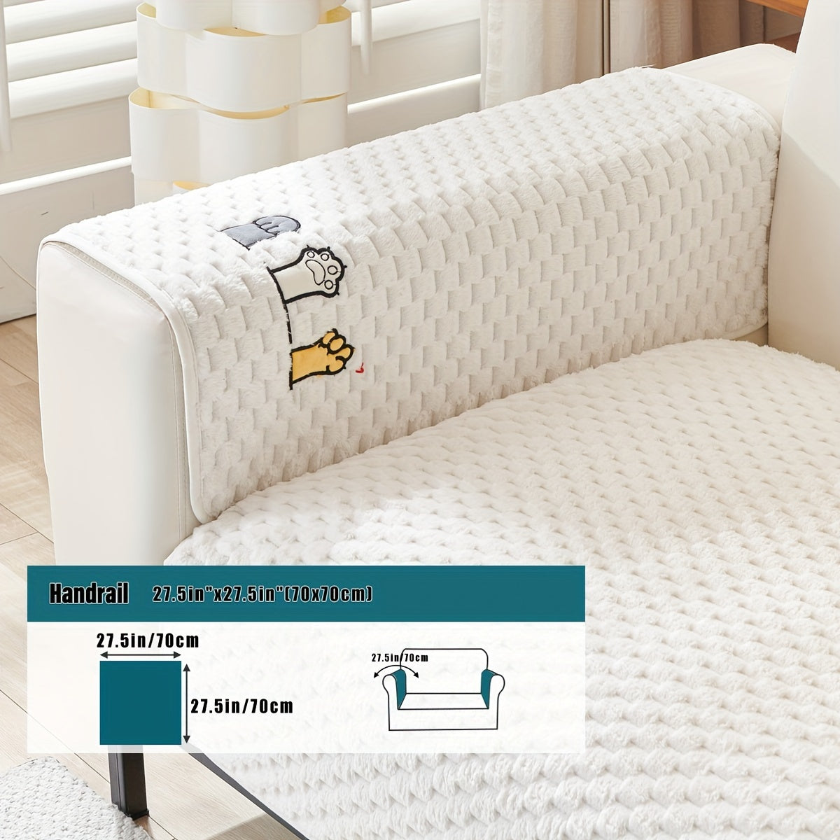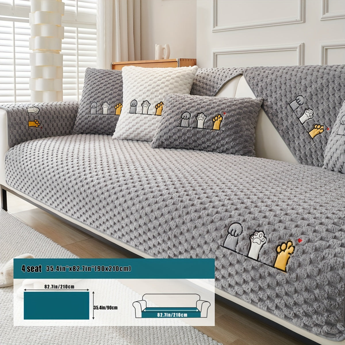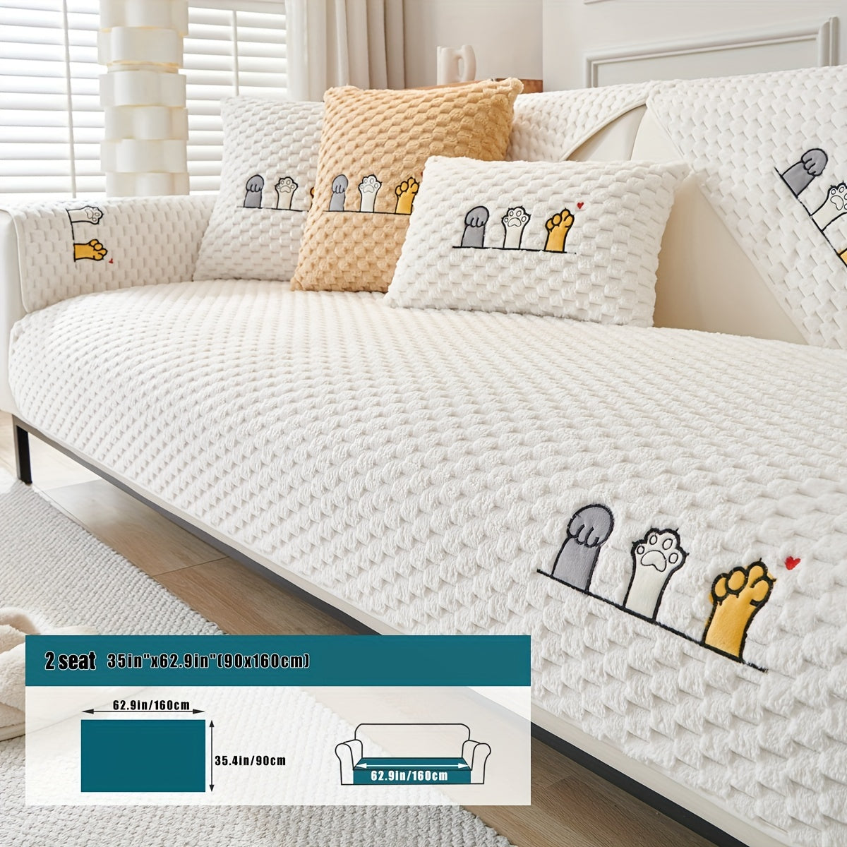 Funda de sofá de terciopelo con bordado de perro de dibujos animados, antideslizante, de felpa gruesa, protector de muebles