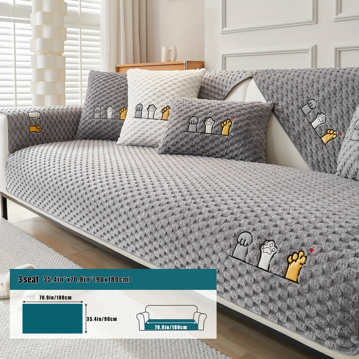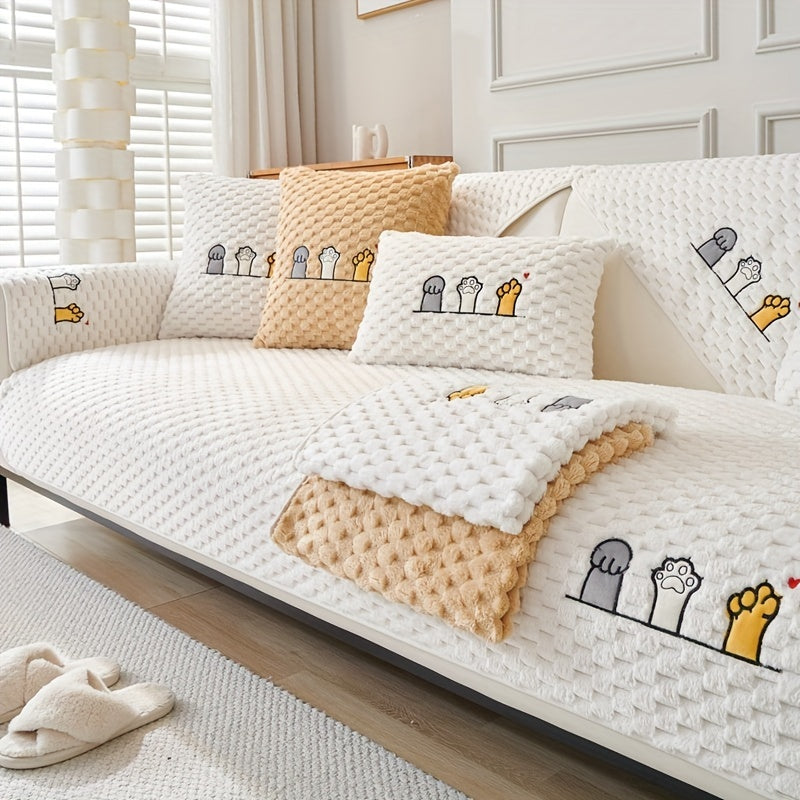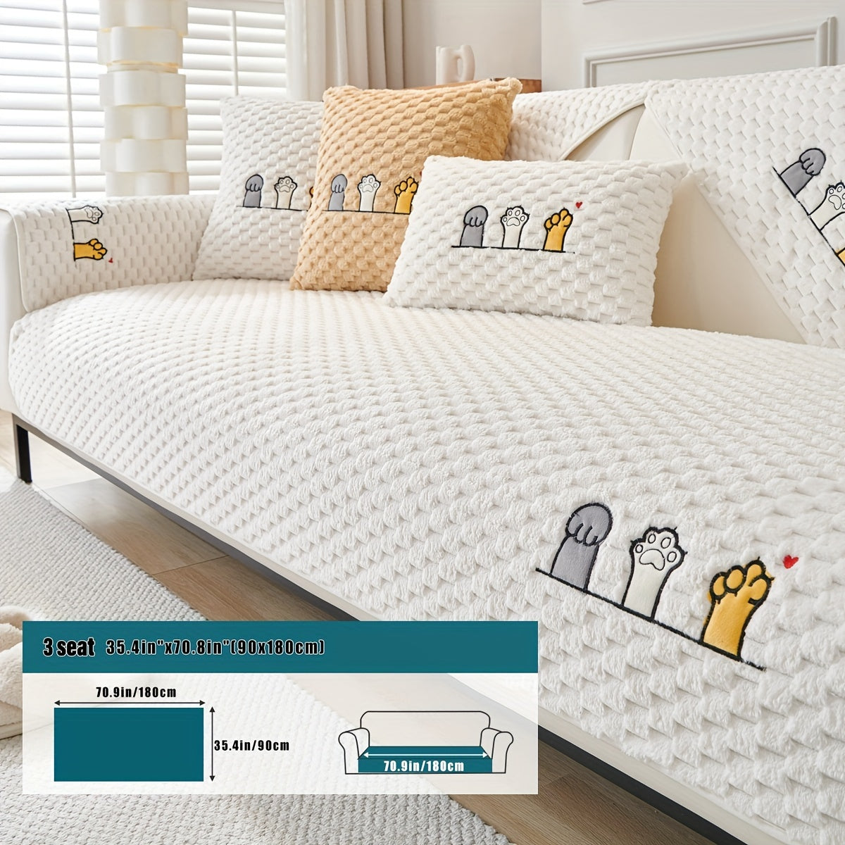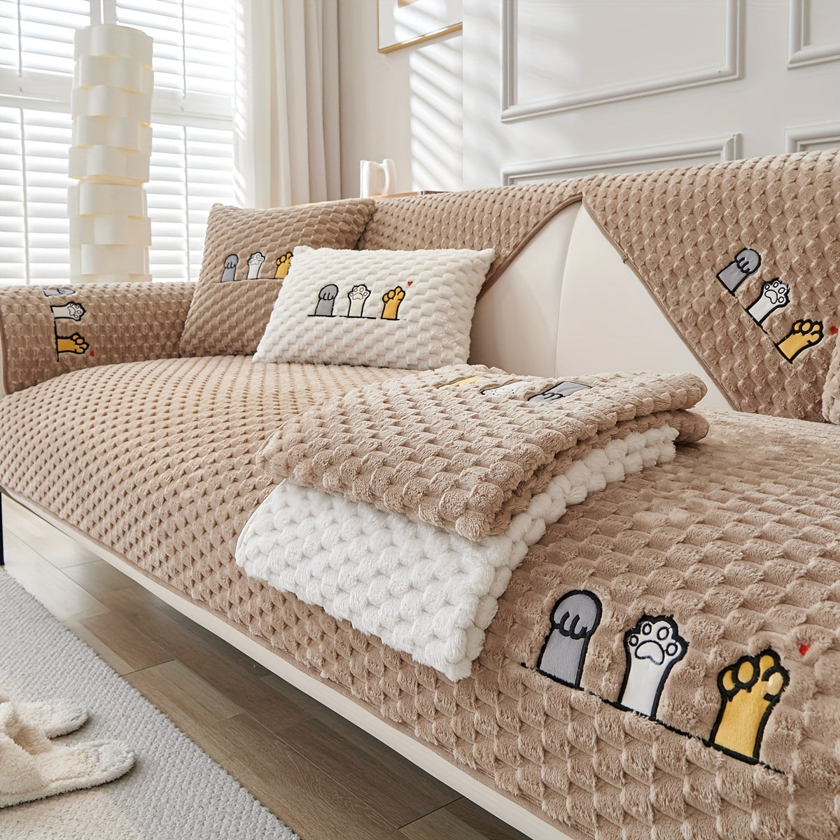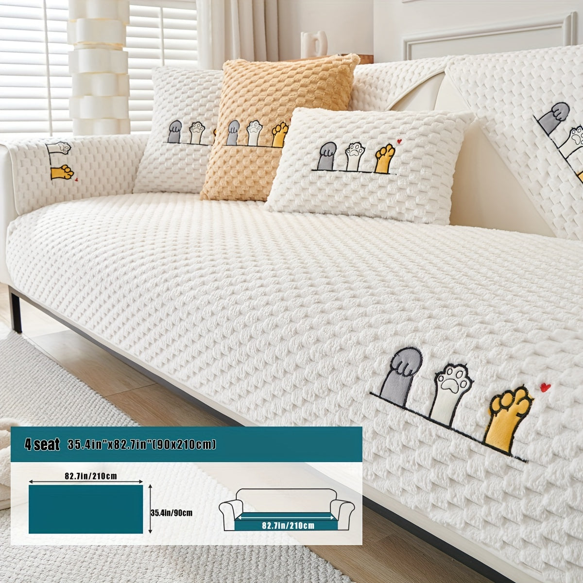 Funda de sofá de terciopelo con bordado de perro de dibujos animados, antideslizante, de felpa gruesa, protector de muebles