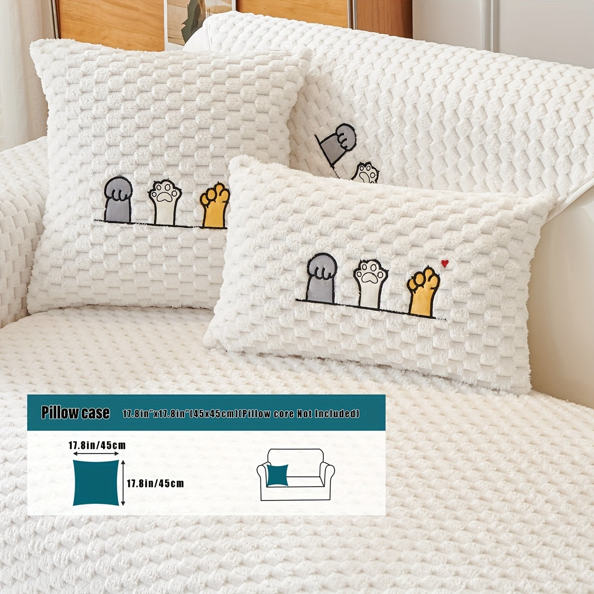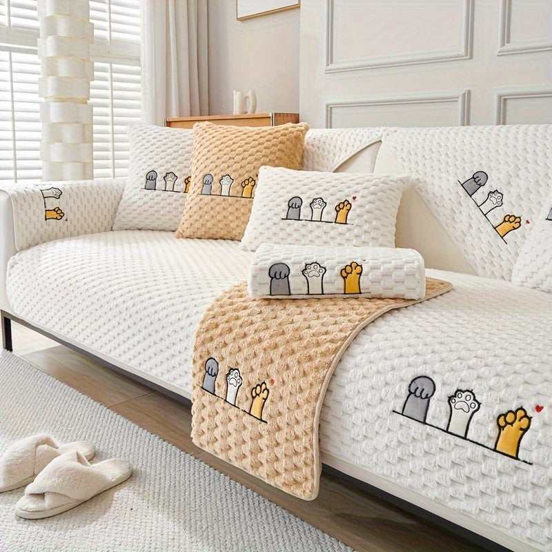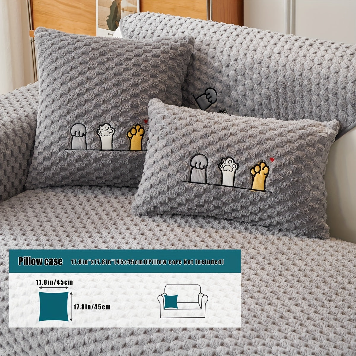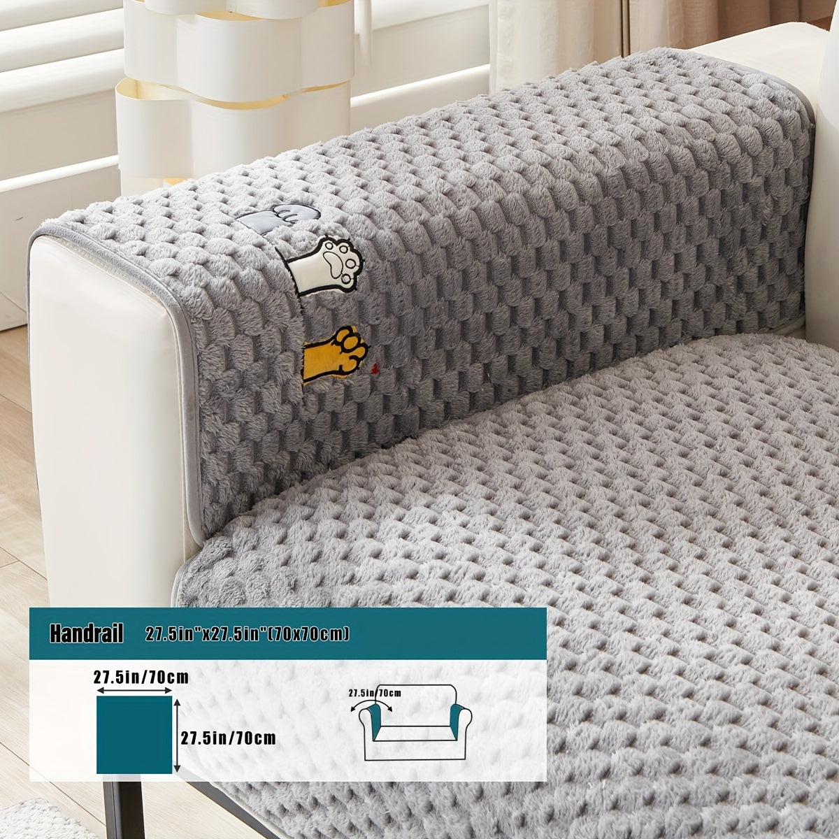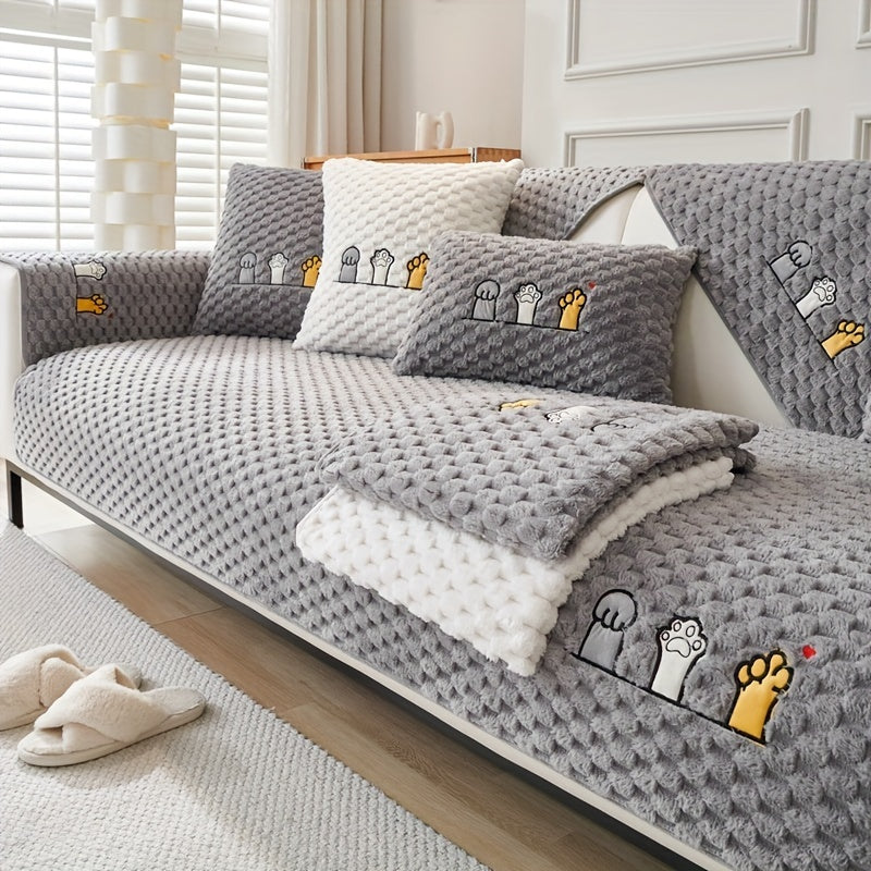 Funda de sofá de terciopelo con bordado de perro de dibujos animados, antideslizante, de felpa gruesa, protector de muebles