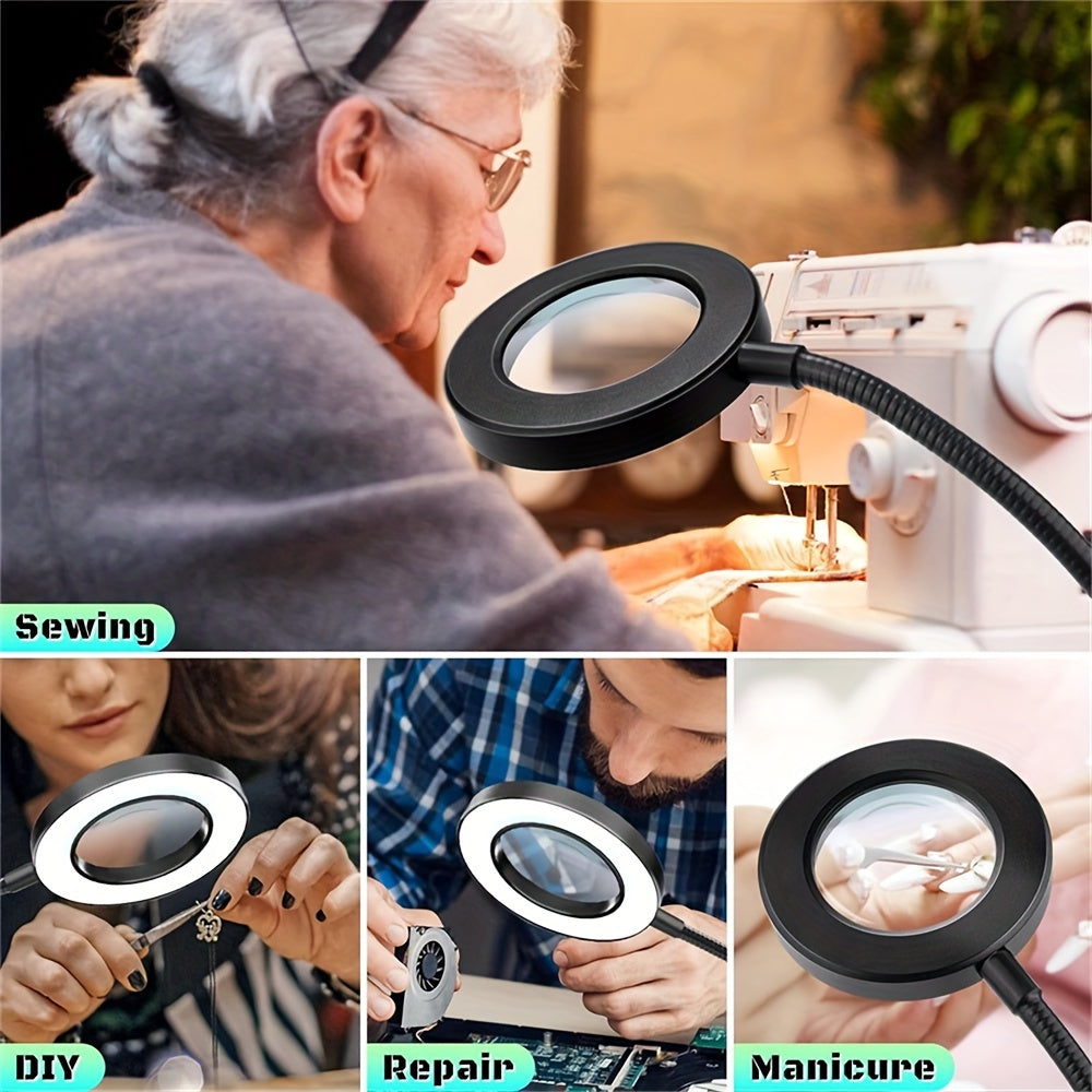 Lámpara de escritorio LED con lupa 10X, luz de pinza USB para lectura y trabajo