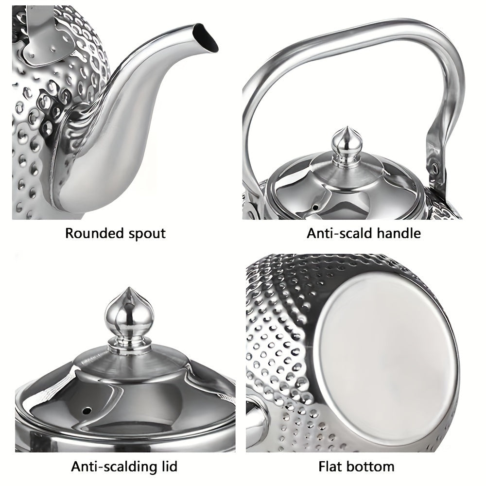 Tetera de acero inoxidable martillado para preparar té, café y leche