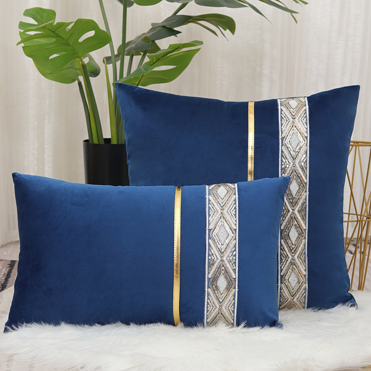 Funda de cojín decorativo de encaje de diamantes de terciopelo, reversible con cremallera, resistente a manchas