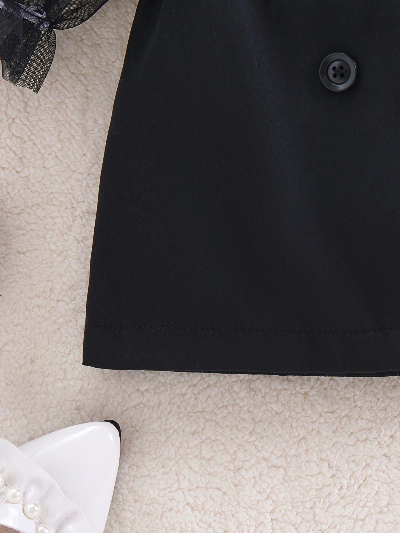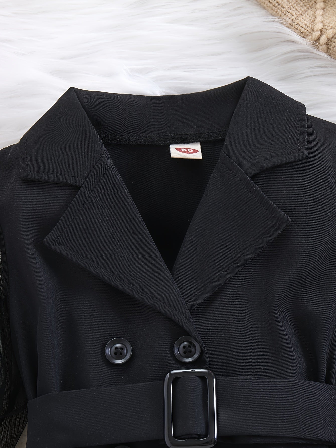 Vestido de malla para niñas pequeñas con cinturón, manga larga, casual, para vacaciones y fiestas