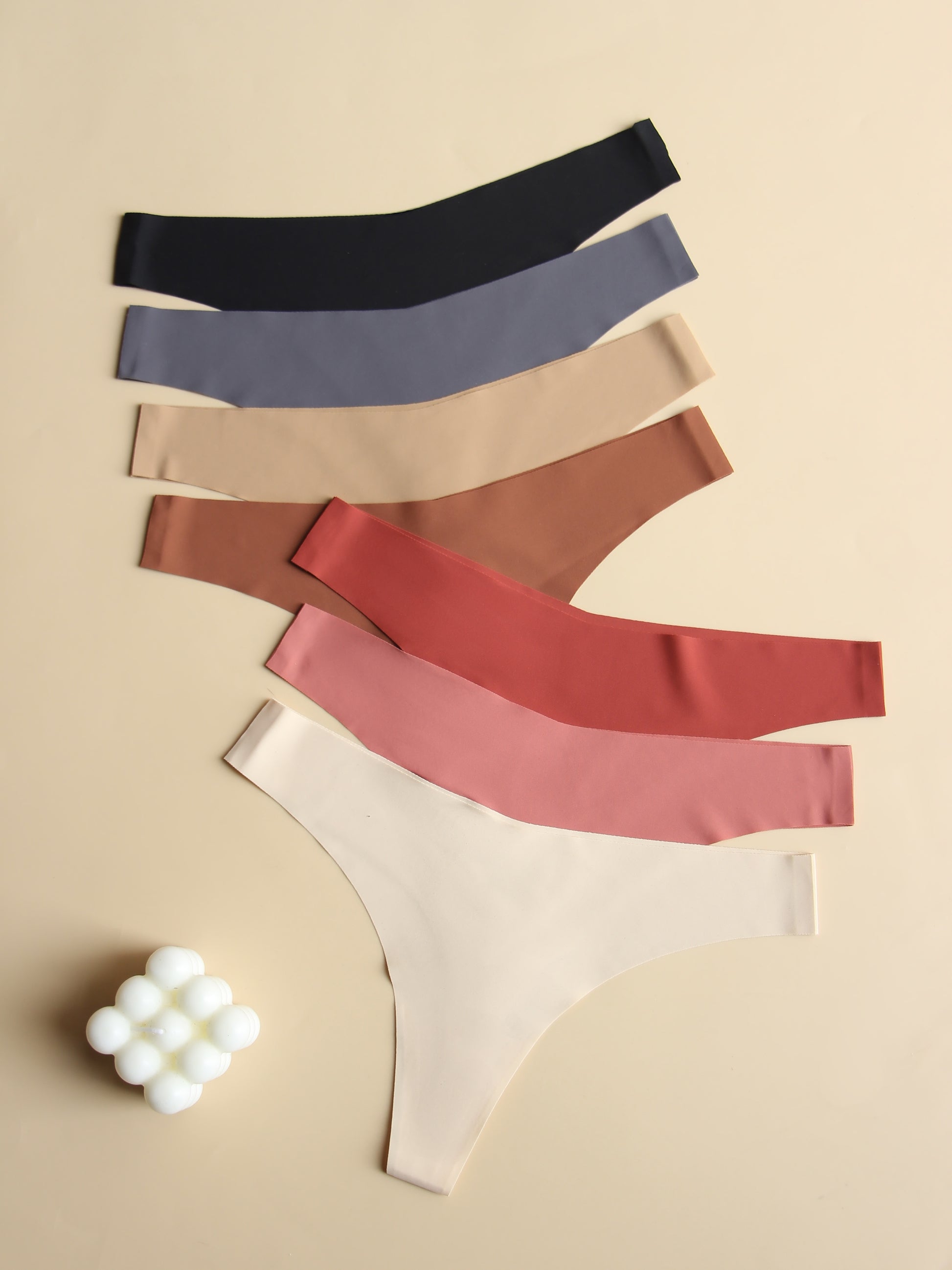 Conjunto de ropa interior sencilla de 7 piezas para mujer con estilo en V, transpirable y de tela suave, tangas hipster