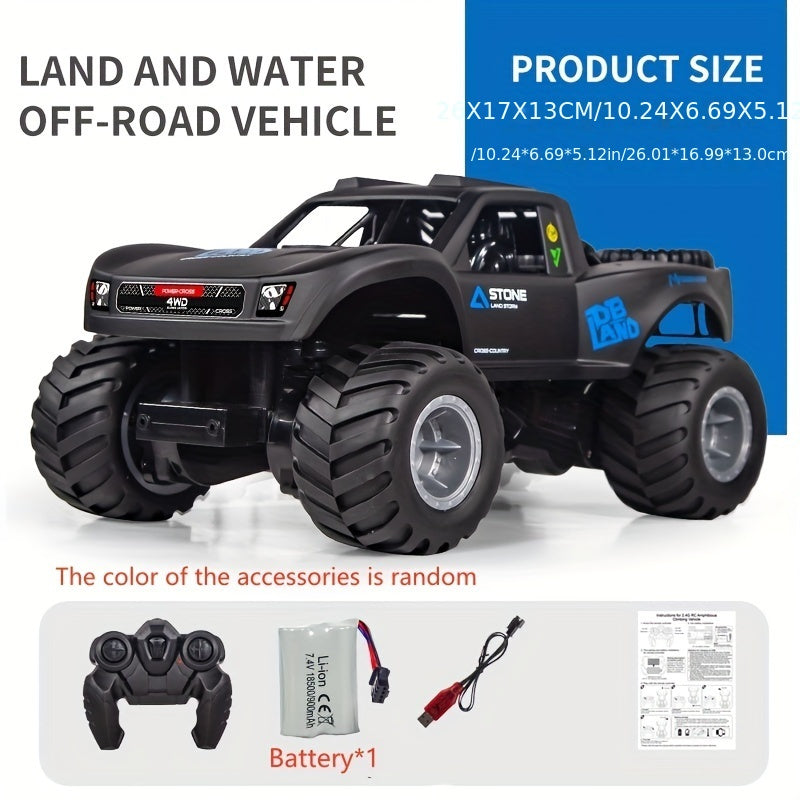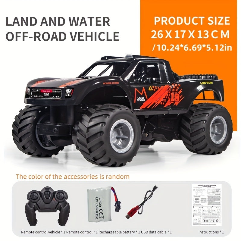 Vehículo control remoto todoterreno para tierra y agua, modo doble de terreno, acrobacias de 360°, largo alcance