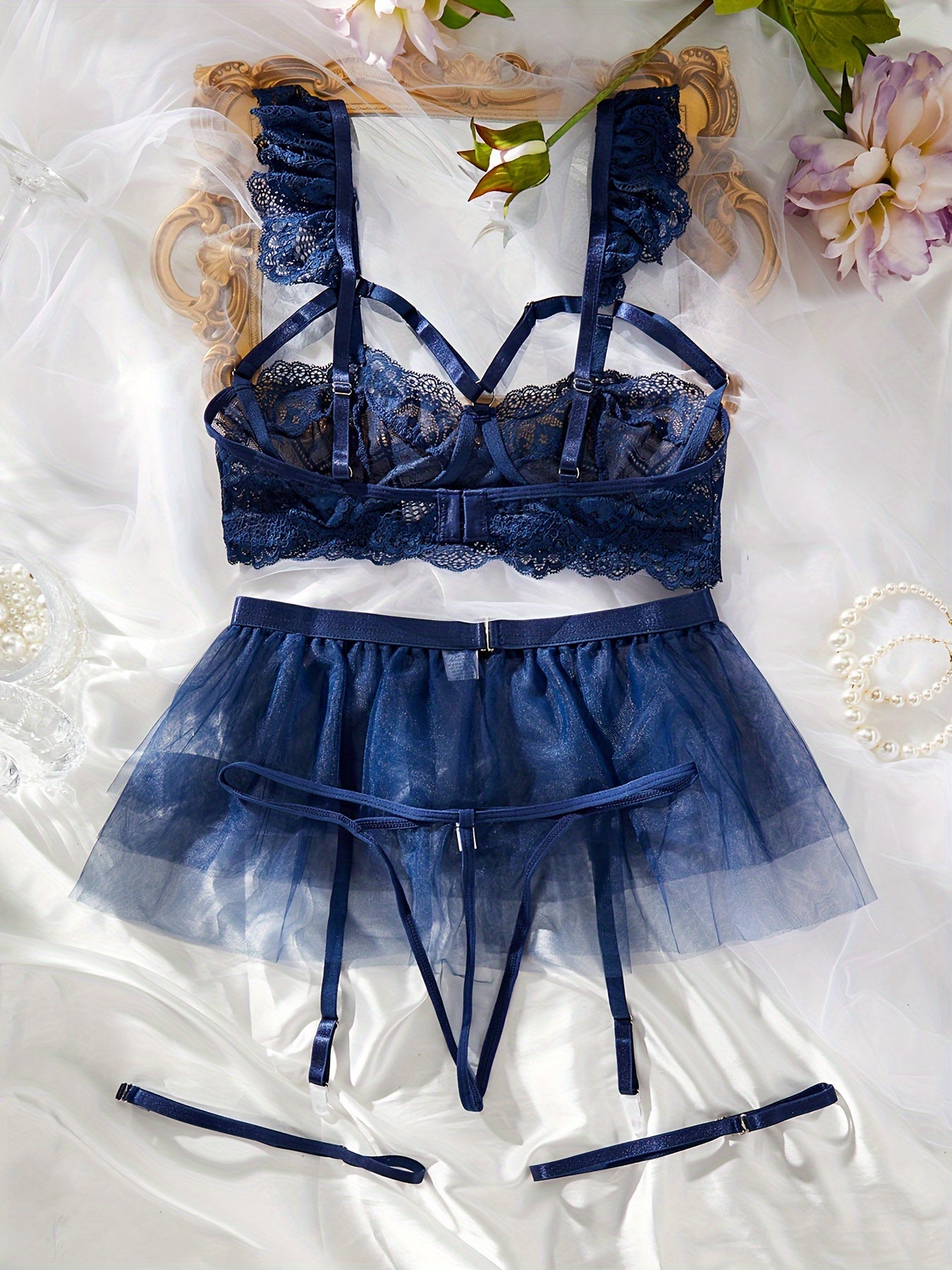 Conjunto de lencería de encaje para mujer con sujetador y braga en negro