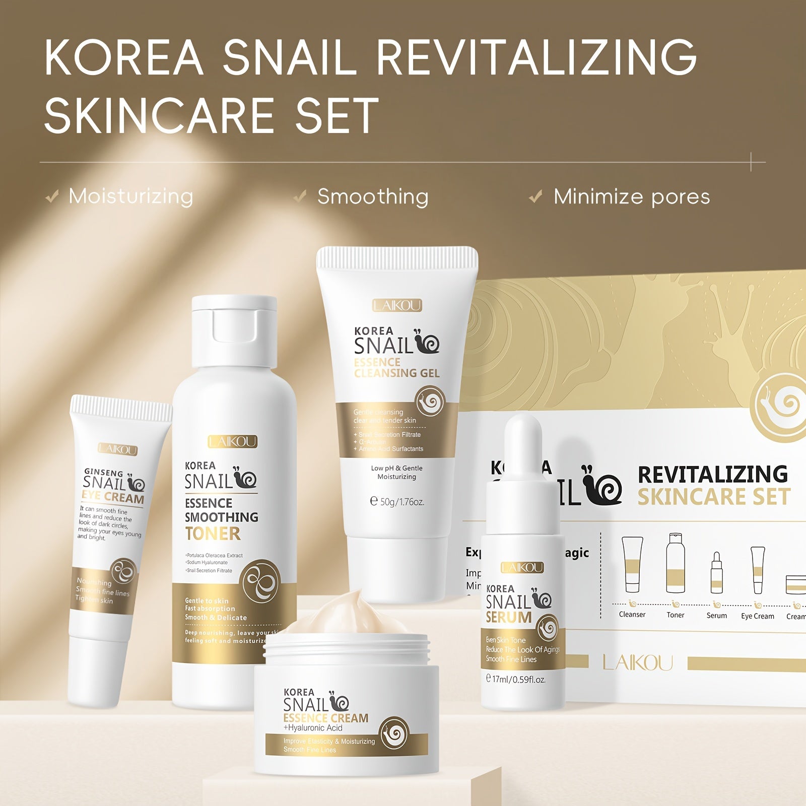 Set de cuidado de la piel con mucina de caracol de 5 pasos para todo tipo de piel, hipoalergénico, hidratante y suavizante