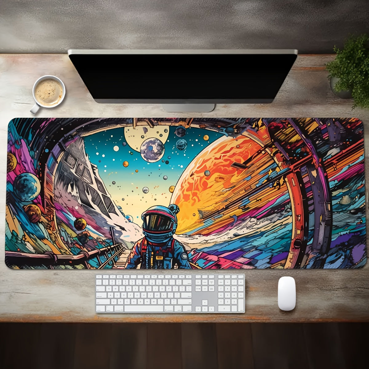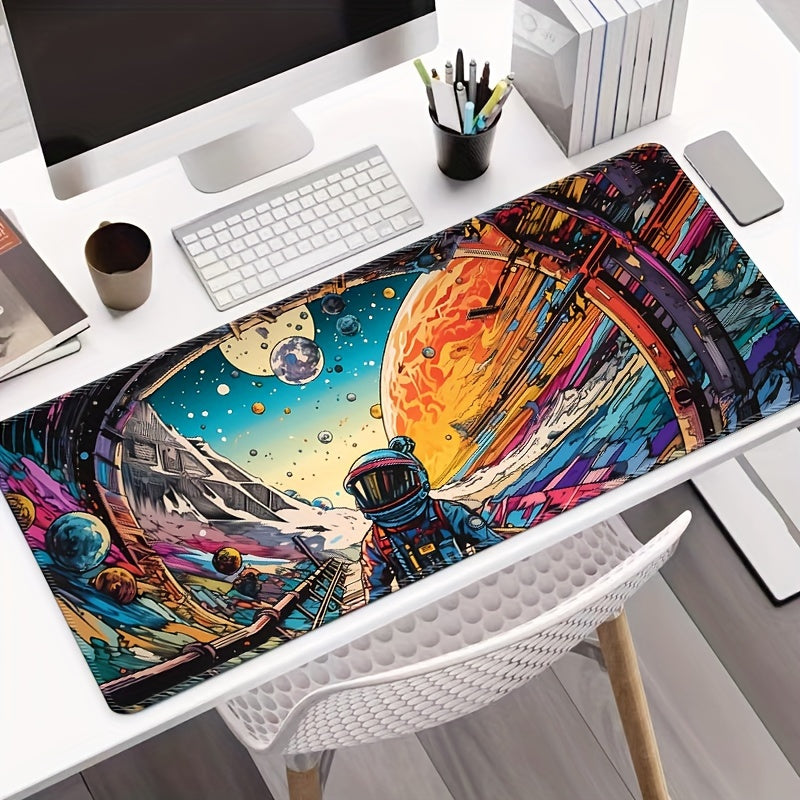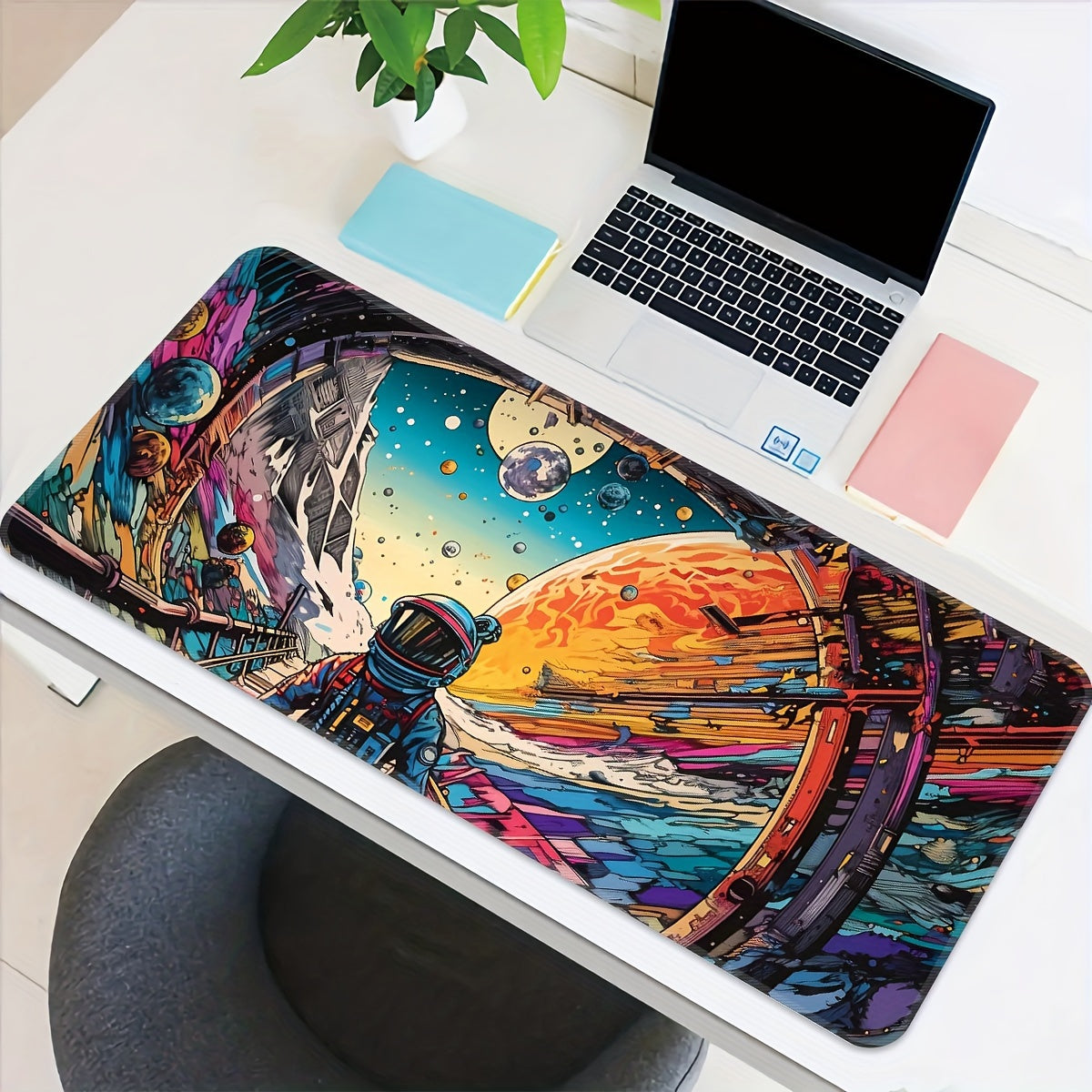 Alfombrilla de ratón de goma grande para juegos con tema espacial, antideslizante, lavable y de gran tamaño