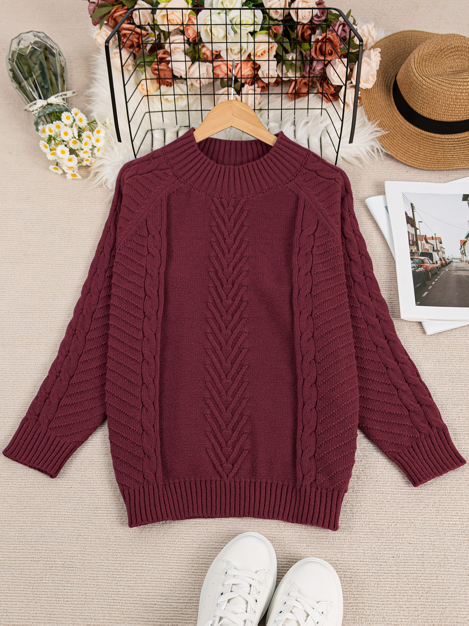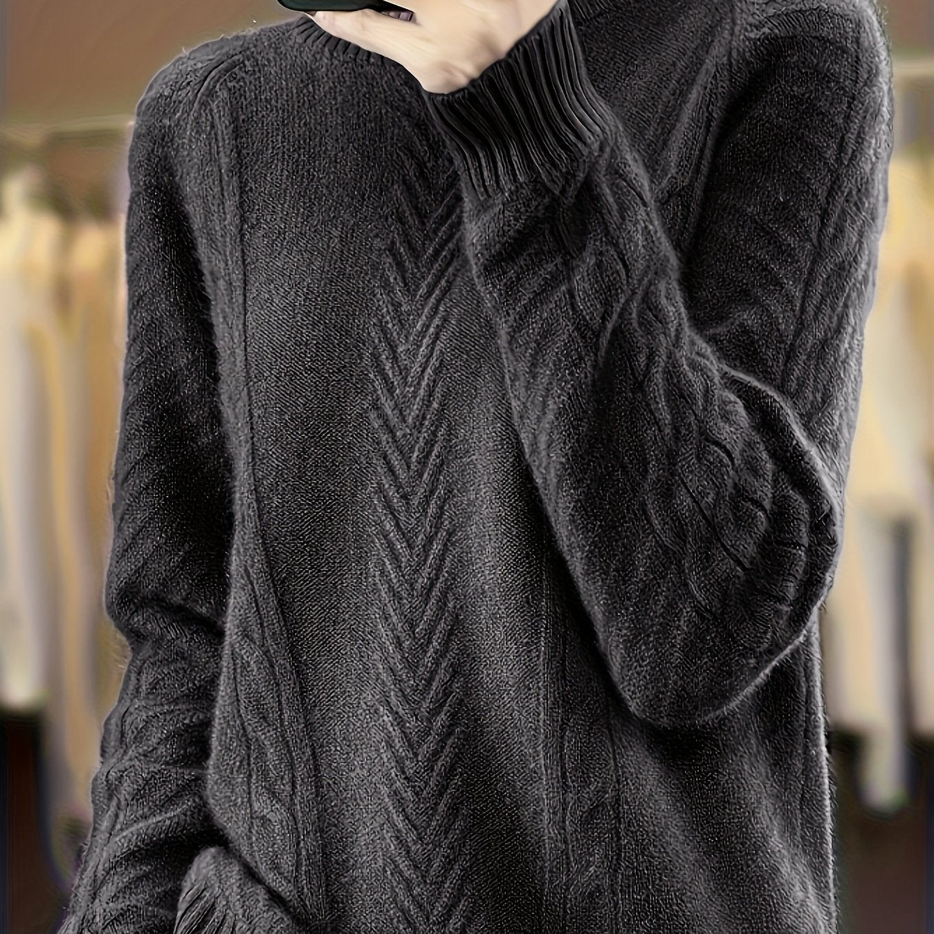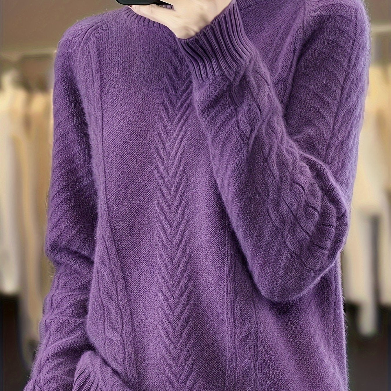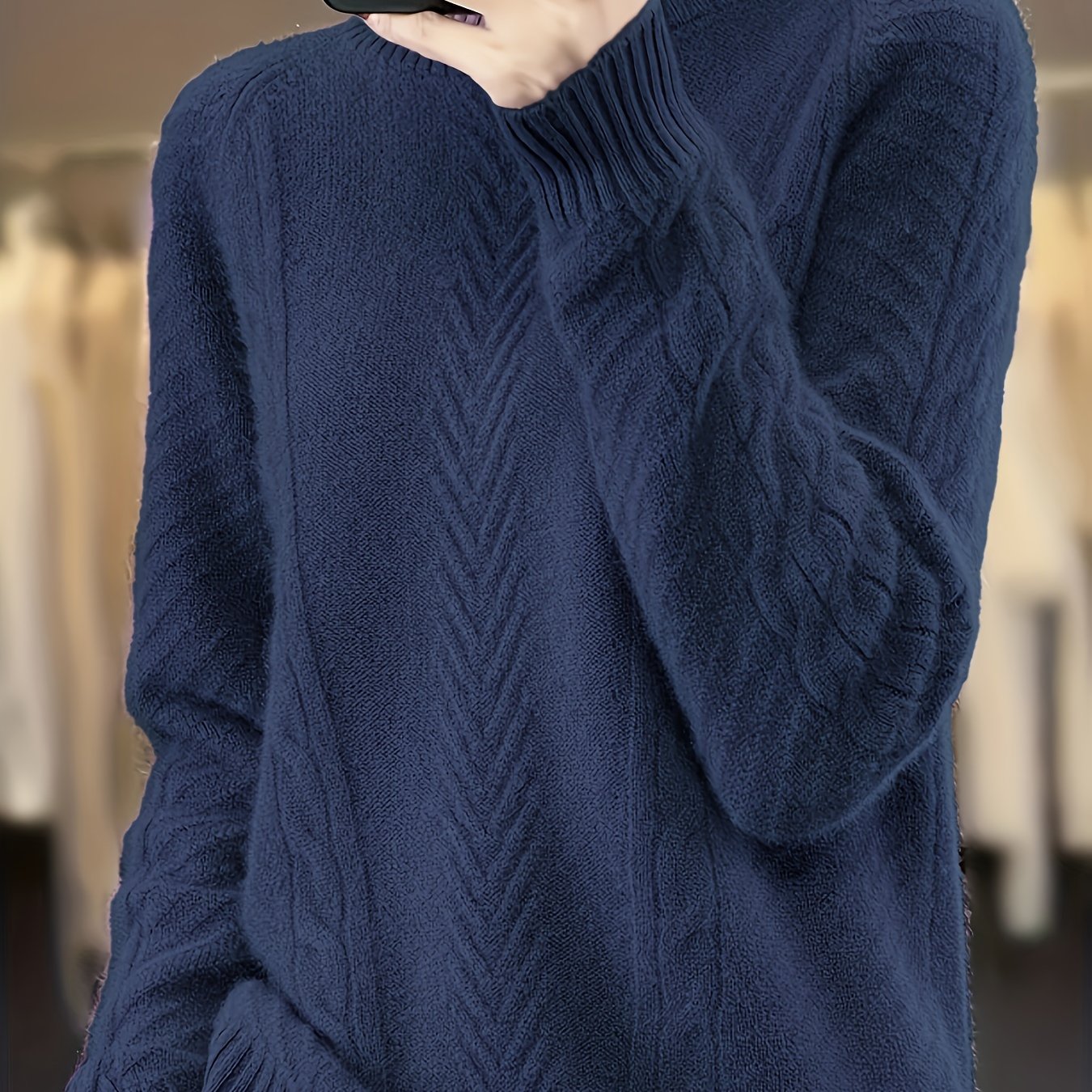Suéter de punto de manga larga y cuello redondo grande para mujer en poliéster sólido