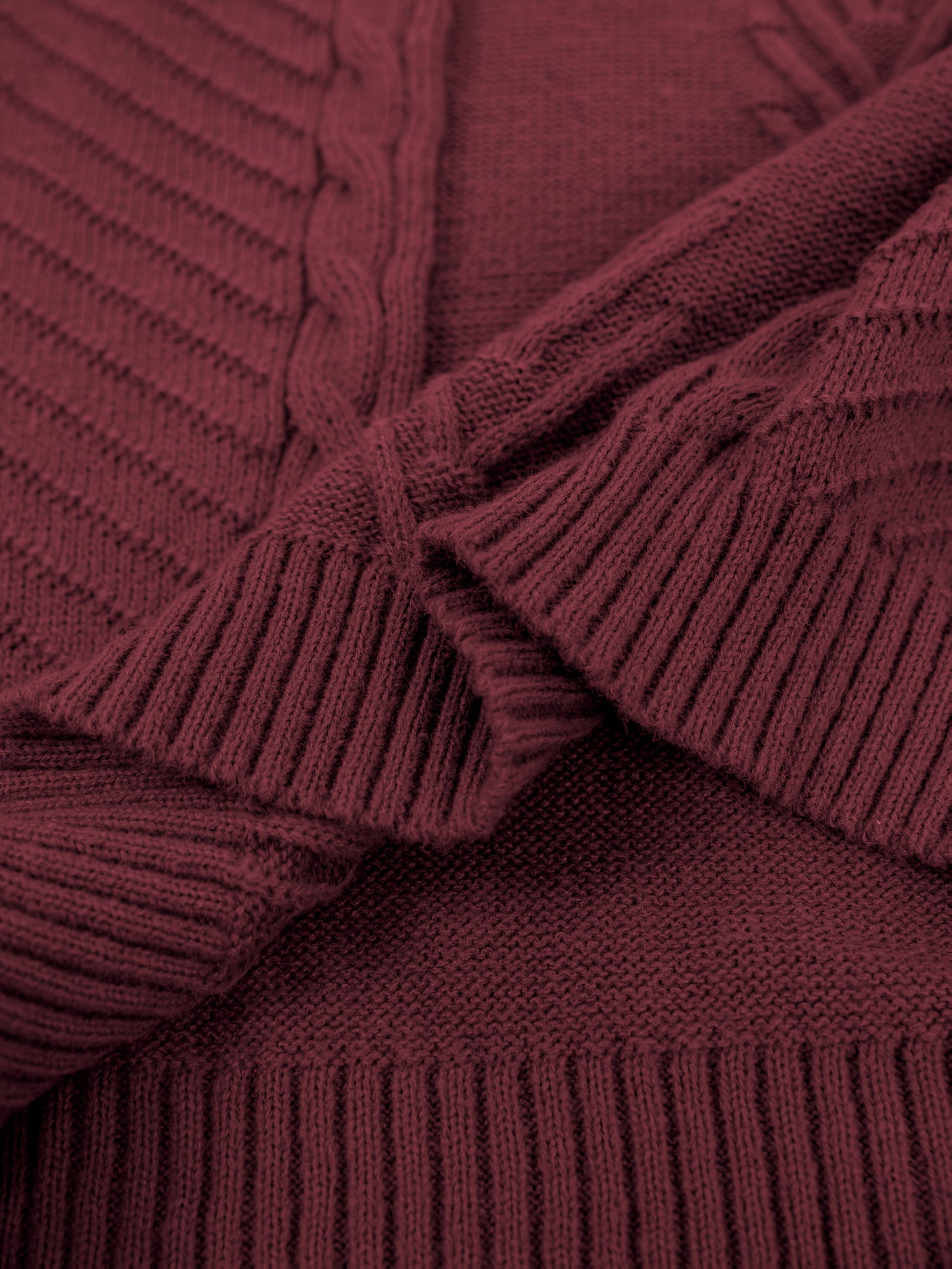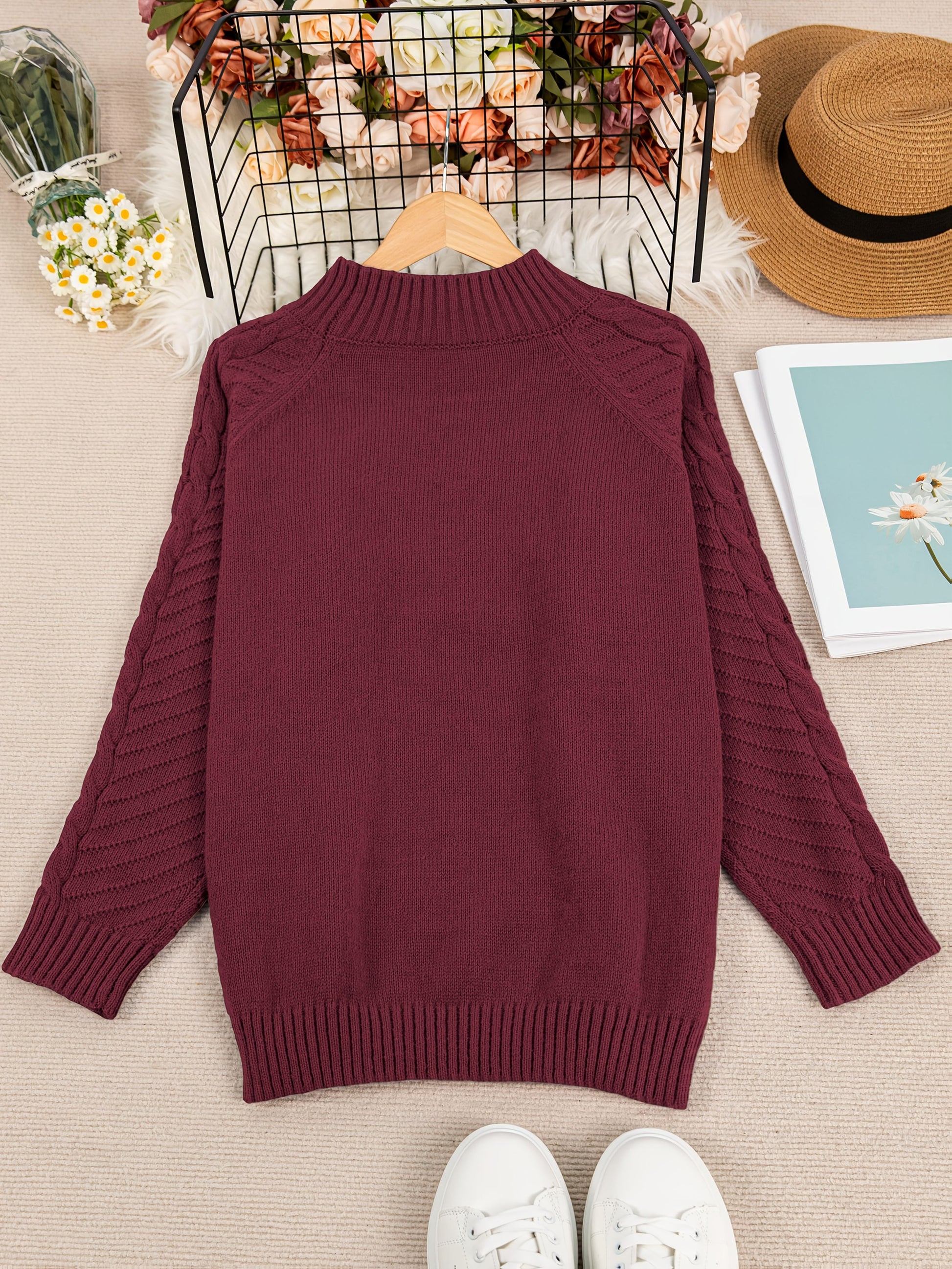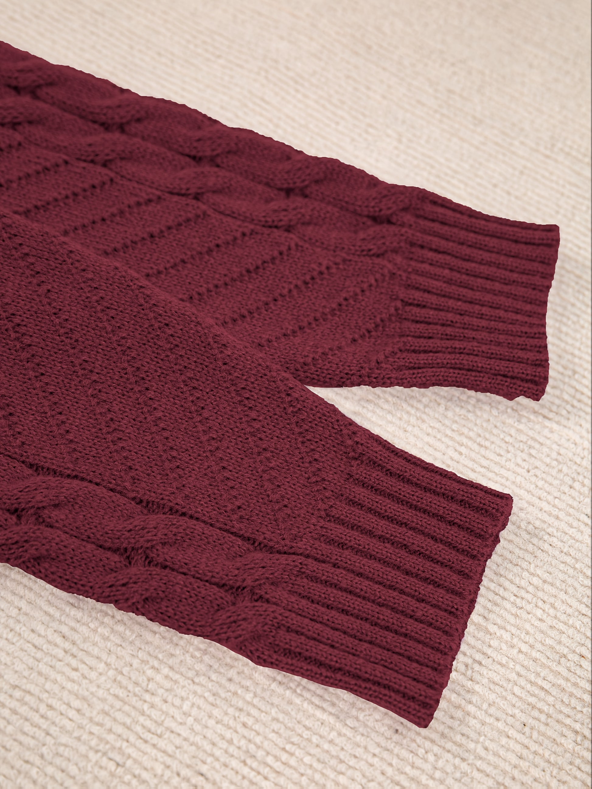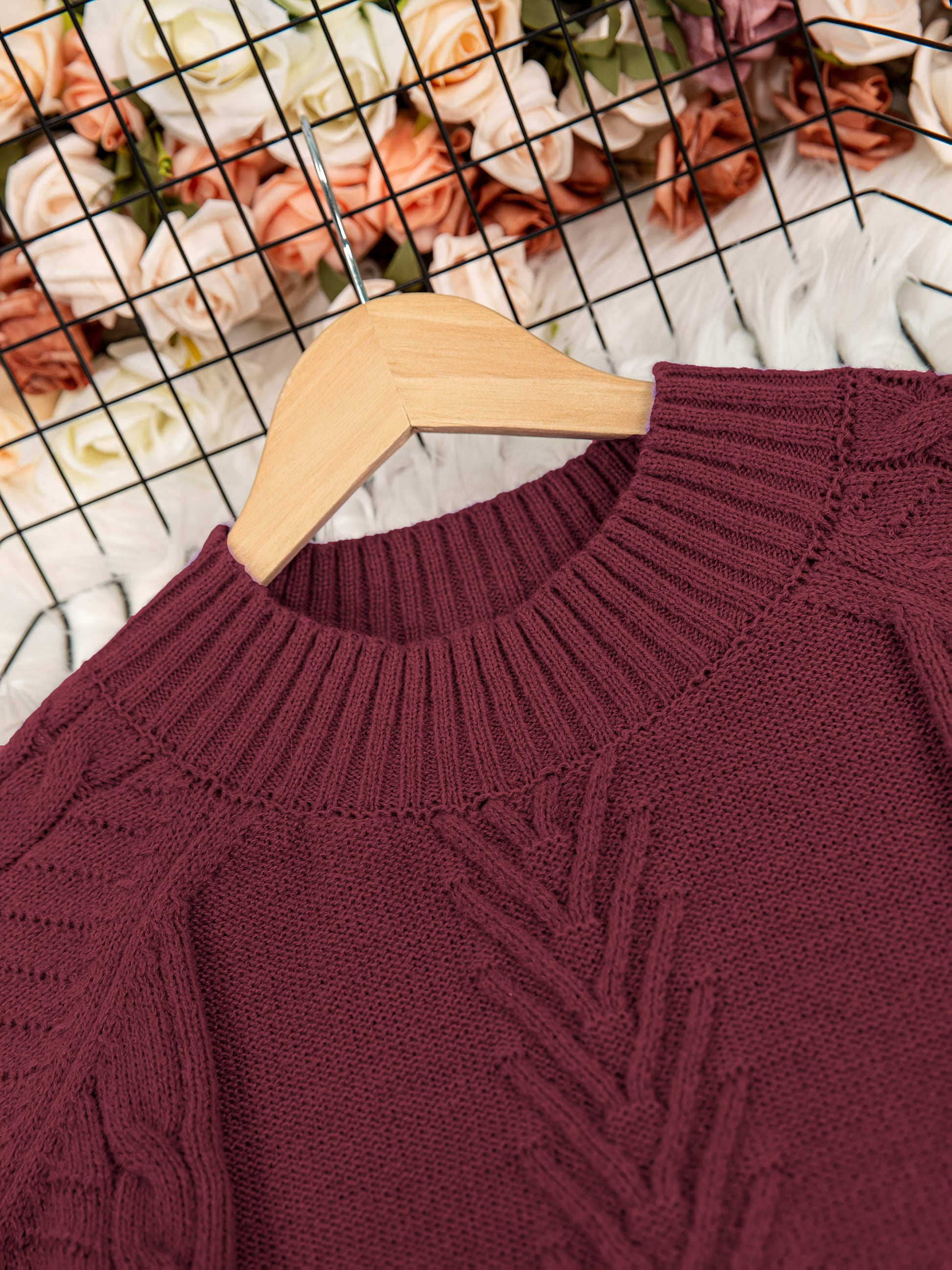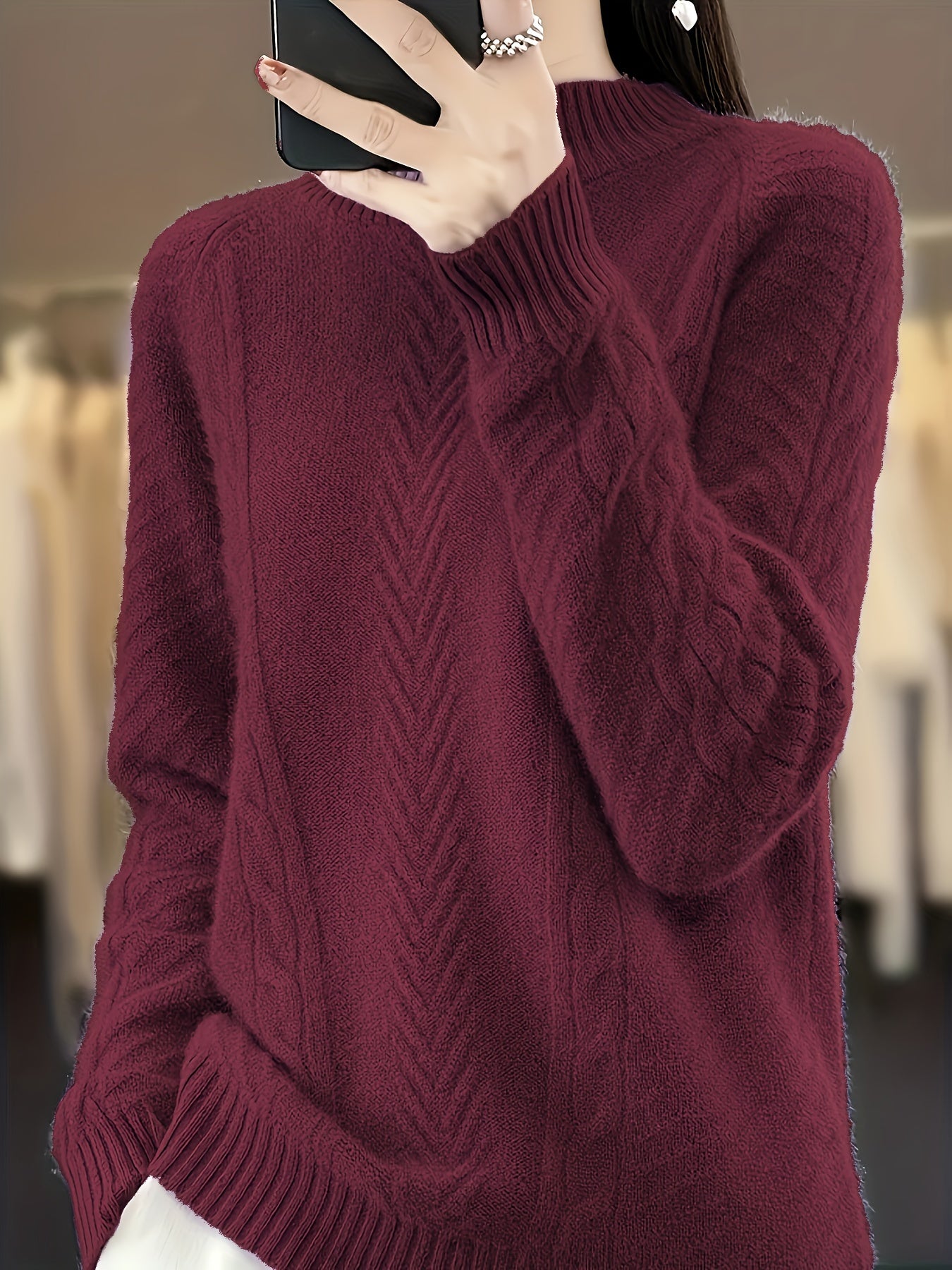 Suéter de punto de manga larga y cuello redondo grande para mujer en poliéster sólido