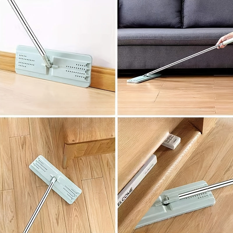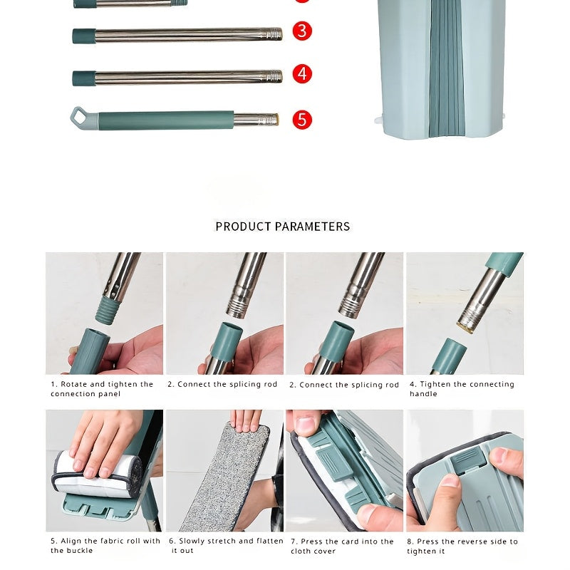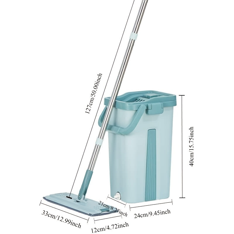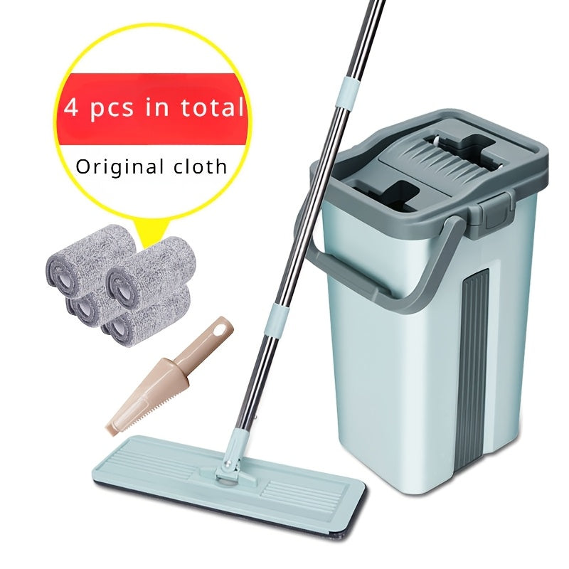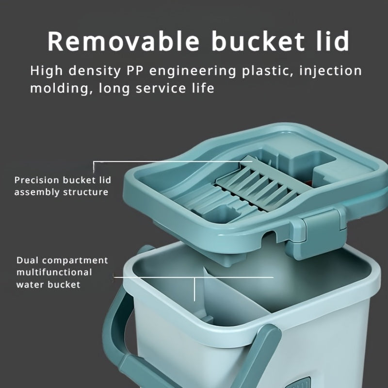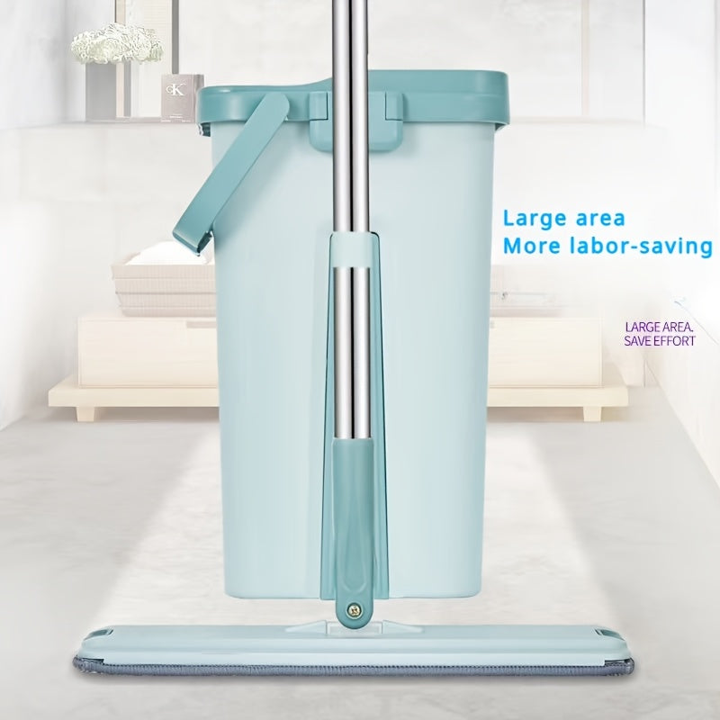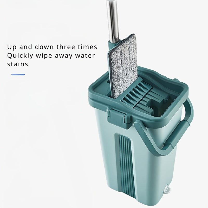 Conjunto de fregona de suelo plano con almohadillas reutilizables, doble función húmeda y seca, cubo con escurrido automático