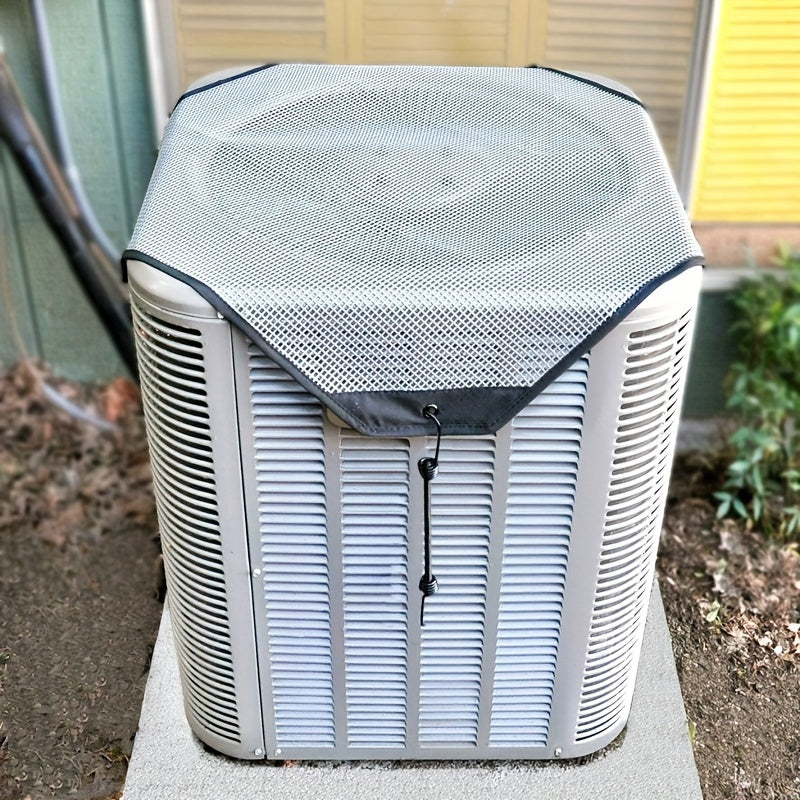 Funda para aire acondicionado gris claro con protector de malla, múltiples tamaños, incluye 4 cuerdas elásticas