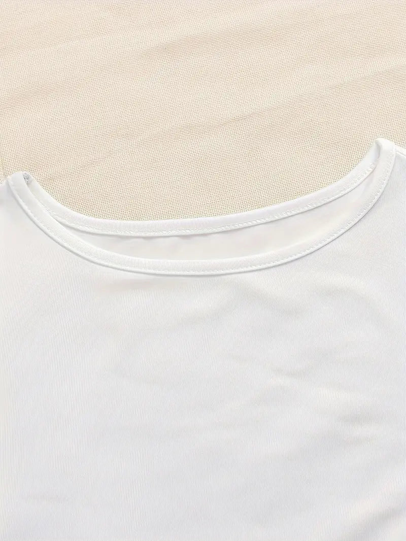 Camiseta de manga larga para adultos de color sólido con micro elasticidad, cuello redondo, casual