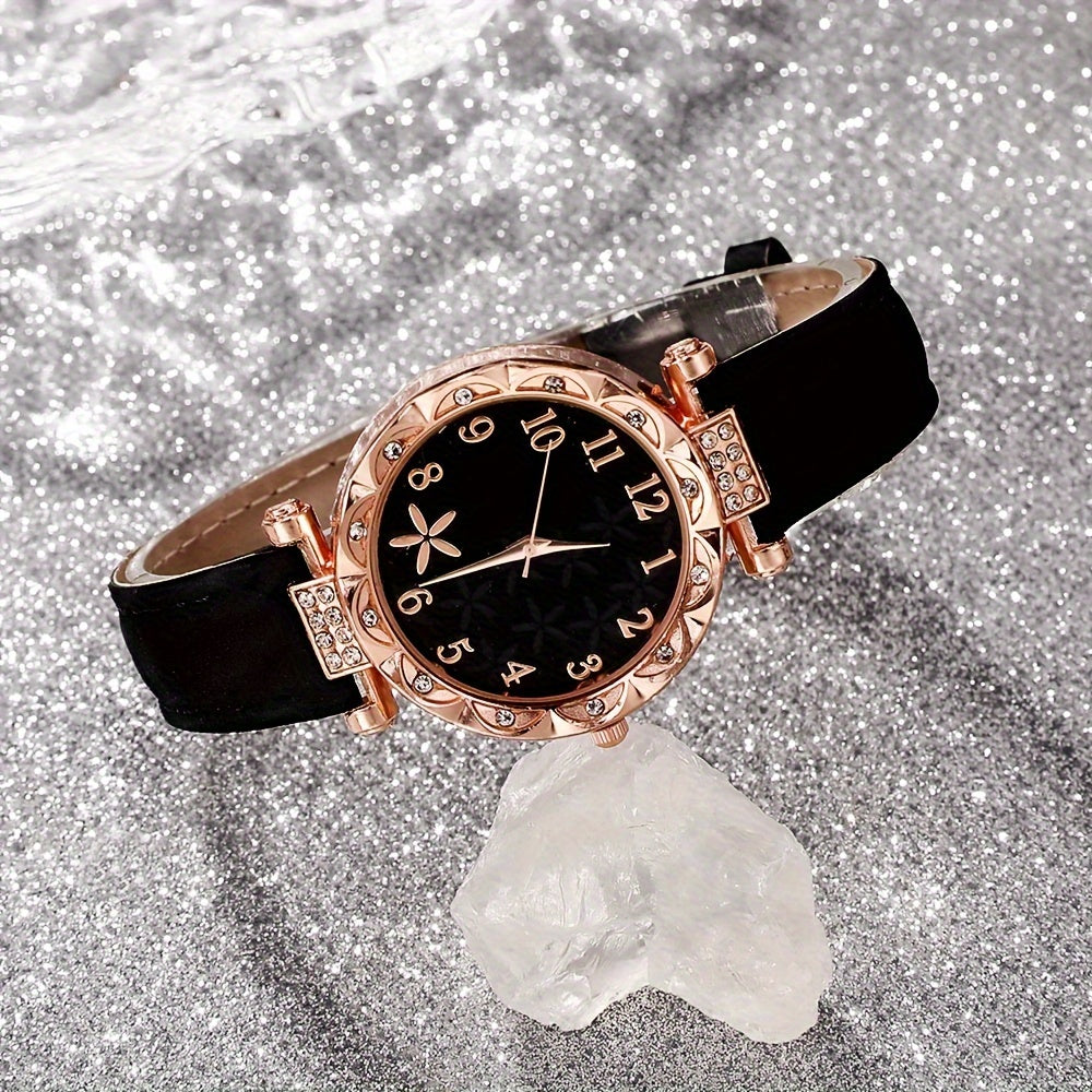 Conjunto de reloj de cuarzo negro con correas de cuero PU, manecillas de aleación de zinc, joyería y regalo