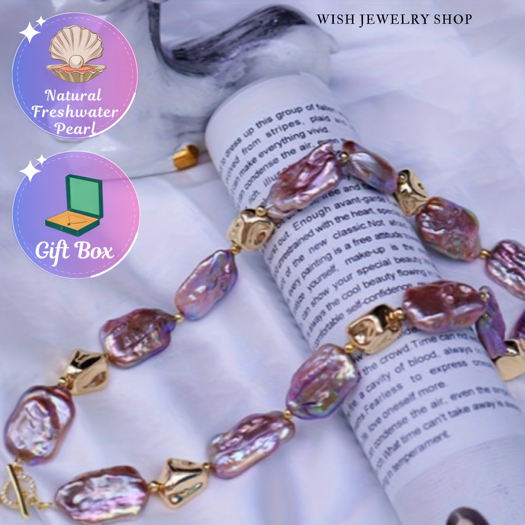 Elegante collar de cadena para clavícula con perla de agua dulce barroca para uso casual y formal