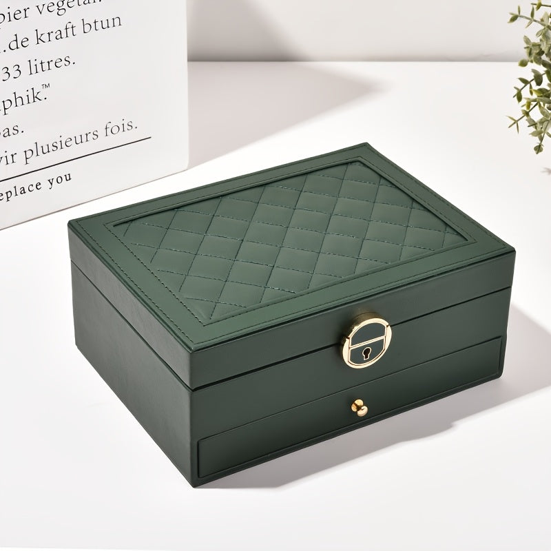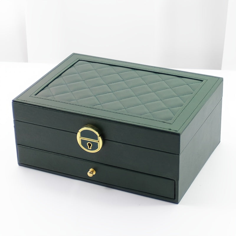 Organizador de joyas de cuero sintético de lujo con cerradura y cajones para mujeres y niñas
