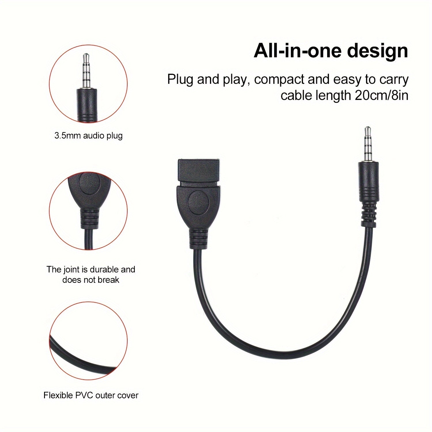Adaptador de 3.5 mm macho a USB 2.0 para coche, convertidor de audio para reproducción de música